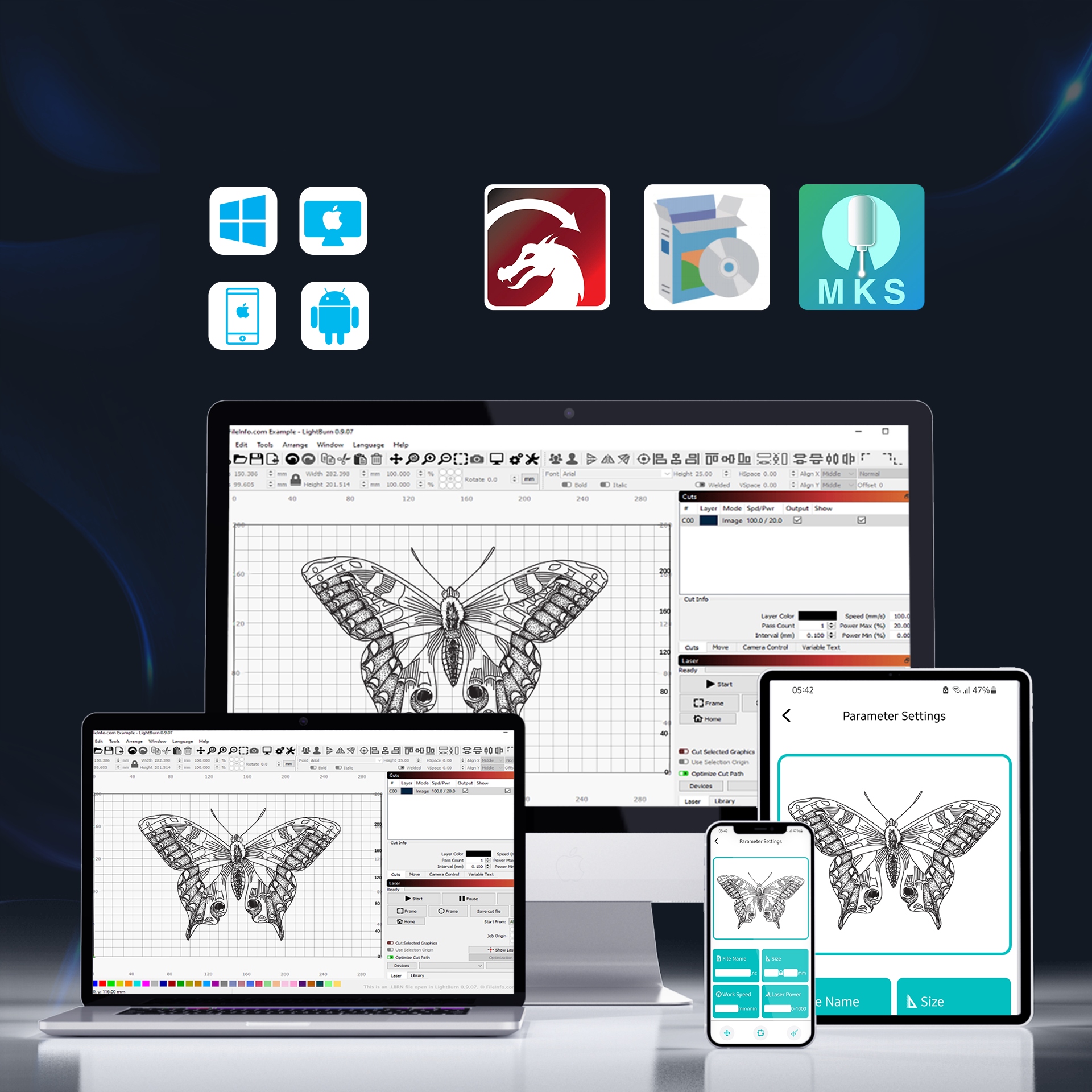 - Служба программного обеспечения: Mkslaser/Lasergrbl/Lightburn Application