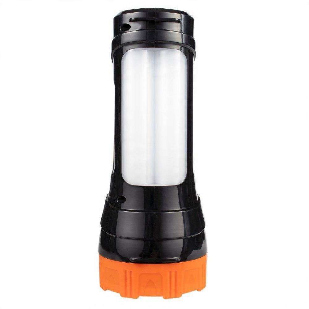 ФОНАРИК 2-В-1 - это многофункциональное устройство, позволяющее осуществлять поиск/обследование местности на расстоянии до 200 м (прожектор) и , расположив его вертикально, вы можете использовать его в качестве лампы b> дома или в походе.