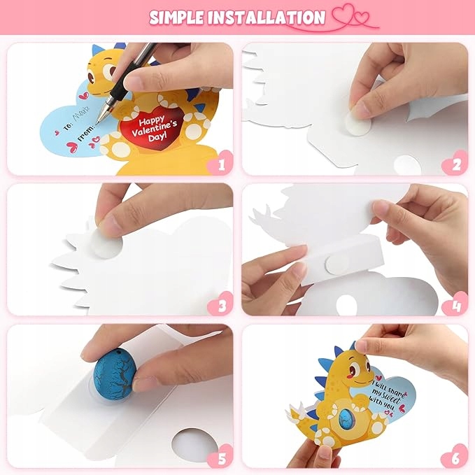 24 пачки подарков Валентина для детей, яйцо динозавра с 3D -картами динозавров