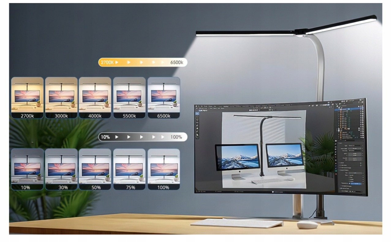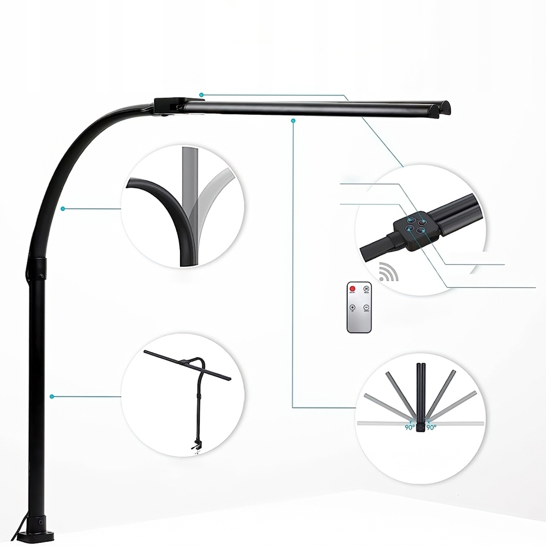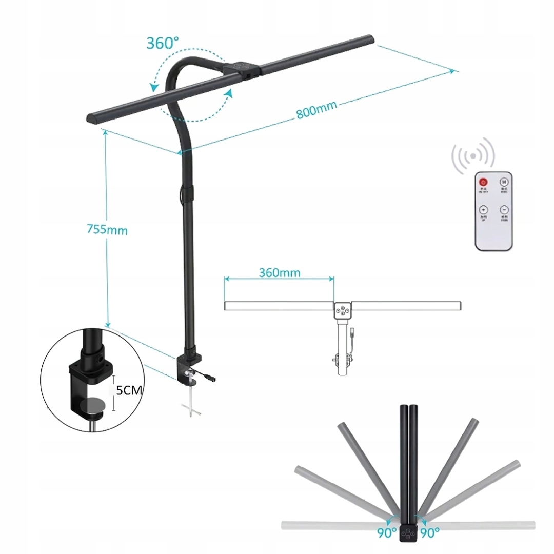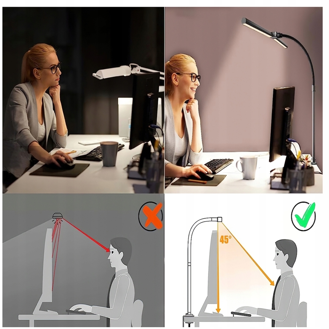 24W настольная лампа со сверхразмерной 80 -см легкой полосой может полностью осветить весь стол. Настольная лампа имеет двойную голову. Максимальная рабочая высота составляет около 76 см, что подходит для 32-дюймового монитора
