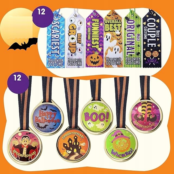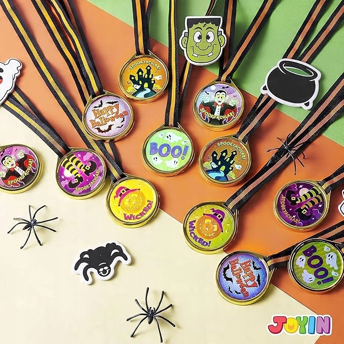 - Тематический дизайн – Каждая медаль украшена мотивами тыквы и летучих мышей, что идеально соответствует настроению Хэллоуина.