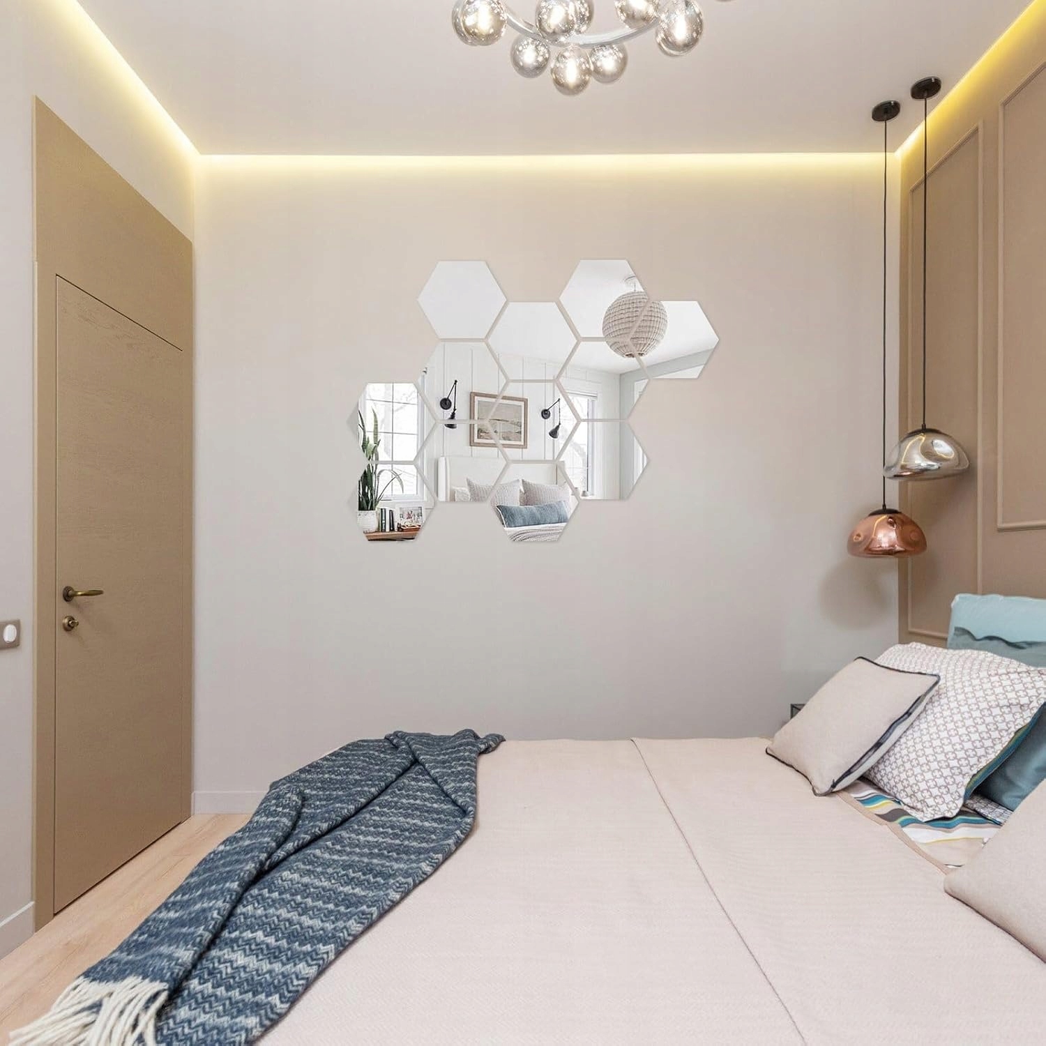 ➡️ В комплект входит: 24 шестигранных зеркальных стикера на стену.