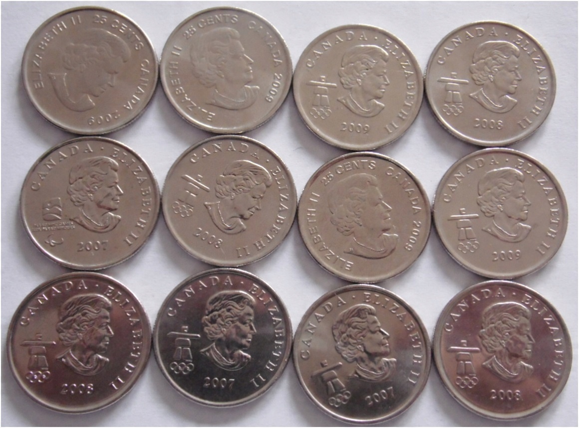 25 ЦЕНТОВ КАНАДА XXI Зимние Олимпийские игры — НАБОР ИЗ 12 — Ванкувер 2010