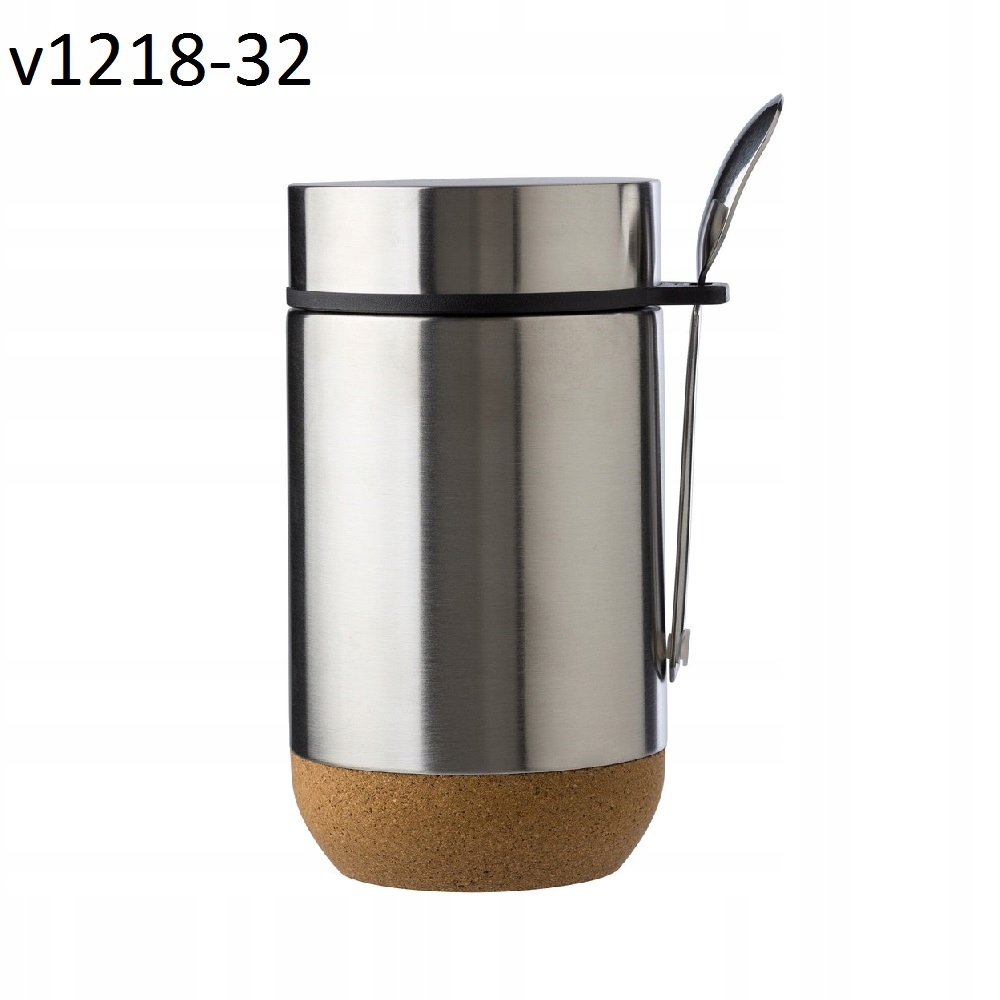 Термоконтейнер пищевой 400 мл, двойные стенки из нержавеющей стали, ложка из нержавеющей стали в комплекте, пробковый элемент