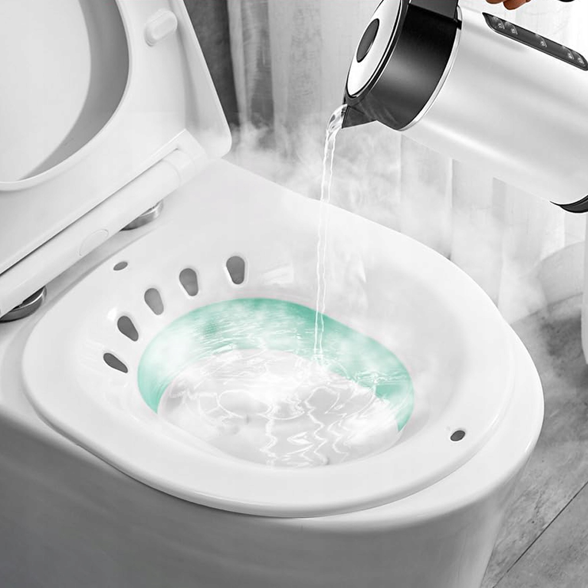 Благодаря этой сеансовой ванне вы сидите в теплой воде и легко поддерживаете кровоток вокруг ягодиц или интимных деталей.
