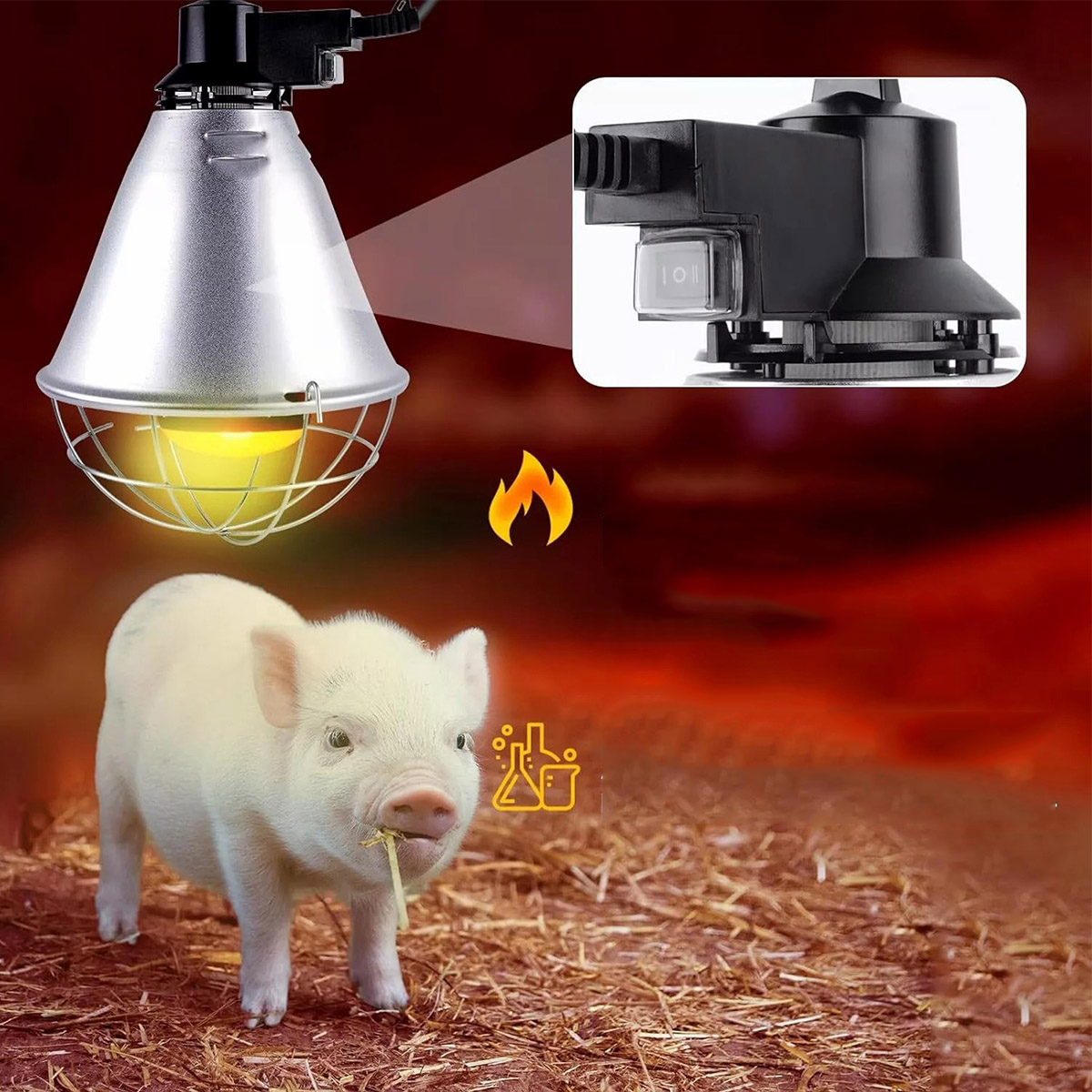 【Эффективный обогрев 】Радиатор с экономичным режимом переключатель, максимальная мощность лампы составляет 250 Вт. Инфракрасные нагревательные лампы работают с нашими абажурами, создавая комфортную, эффективную среду обогрева и нераздражающий свет для щенков, цыплят и вылупившихся рептилий.