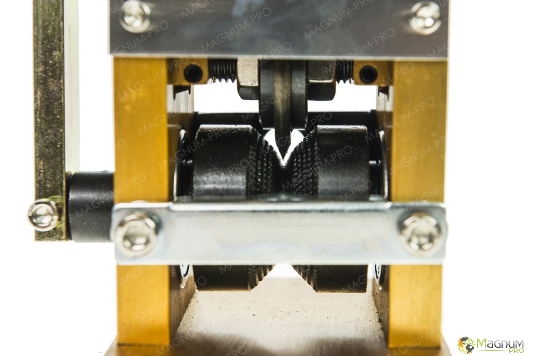Окорочный станок очень прост в использовании. Вставляем трос между двумя роликами, которые прилегают к тросику и идеально направляем его вдоль ножа. С помощью ручки на устройстве регулируем высоту ножа и, следовательно, диаметр проволоки.