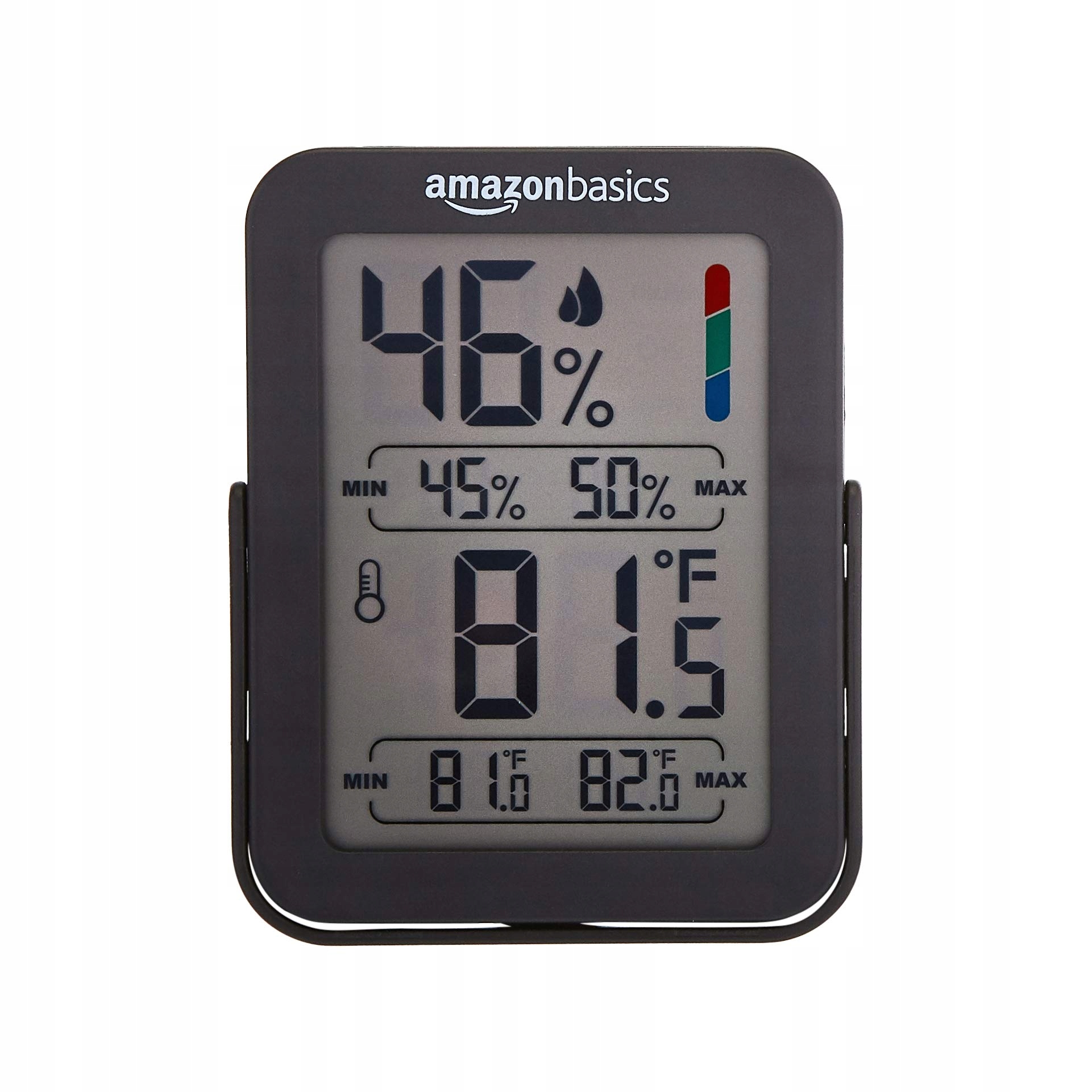 Следите за температурой и влажностью в вашем доме с помощью цифрового термогигрометра от AmazonBasics. Он имеет легко читаемый дисплей и подходит как для внутреннего, так и для наружного использования. Цифровой дисплей легко читается, поэтому у вас всегда есть обзор всех значений – как внутри, так и снаружи. Прибор показывает влажность в процентах, а также три сообщения о состоянии (СУХО, ОК, ВЛАЖНО); температура указывается в ° F или ° C. Устройство также показывает максимальные и минимальные значения влажности и температуры. Его также можно быстро и легко прикрепить к стене с помощью шурупа.