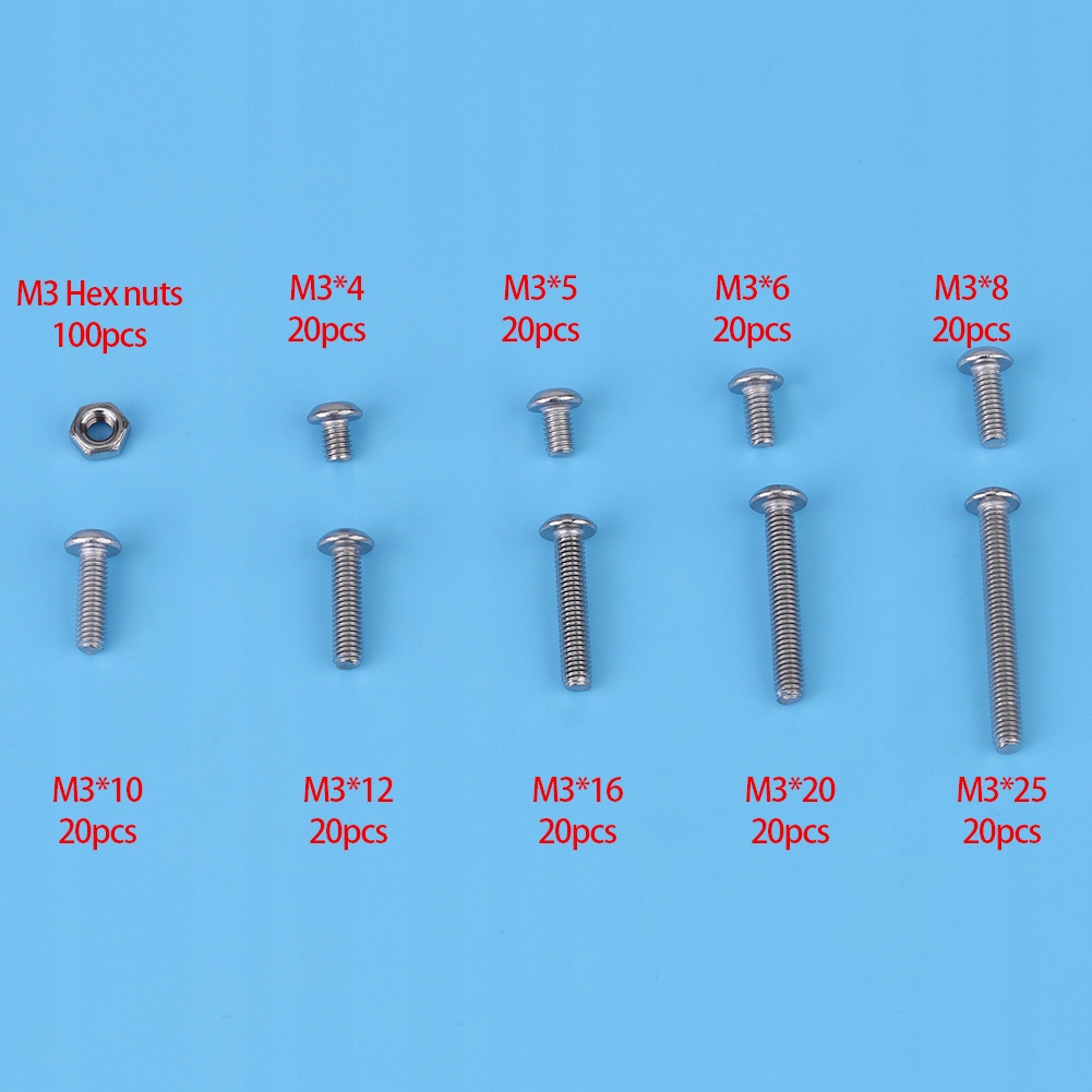 280 шт. M3*4/5/6/8/10/12/16/20/25 Винты с шестигранной головкой, гайки с пластиковым корпусом