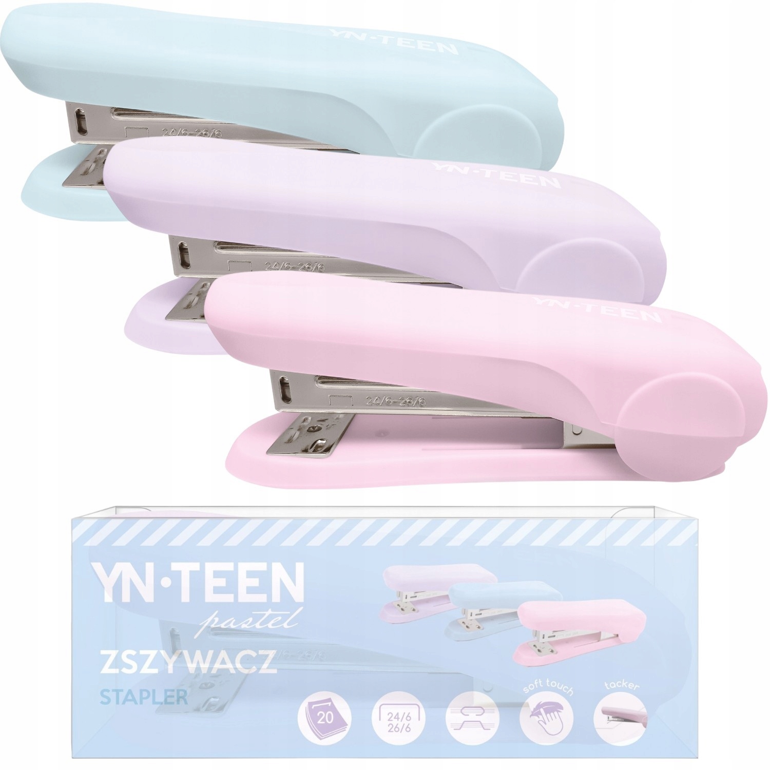 Stapler в 3 пастельных тонах. Мягкое касание корпус красиво на ощупь. Оснащен двумя вариантами шитья. Основной размер: 24/6 или 26/6. Он устанавливает до 20 страниц.