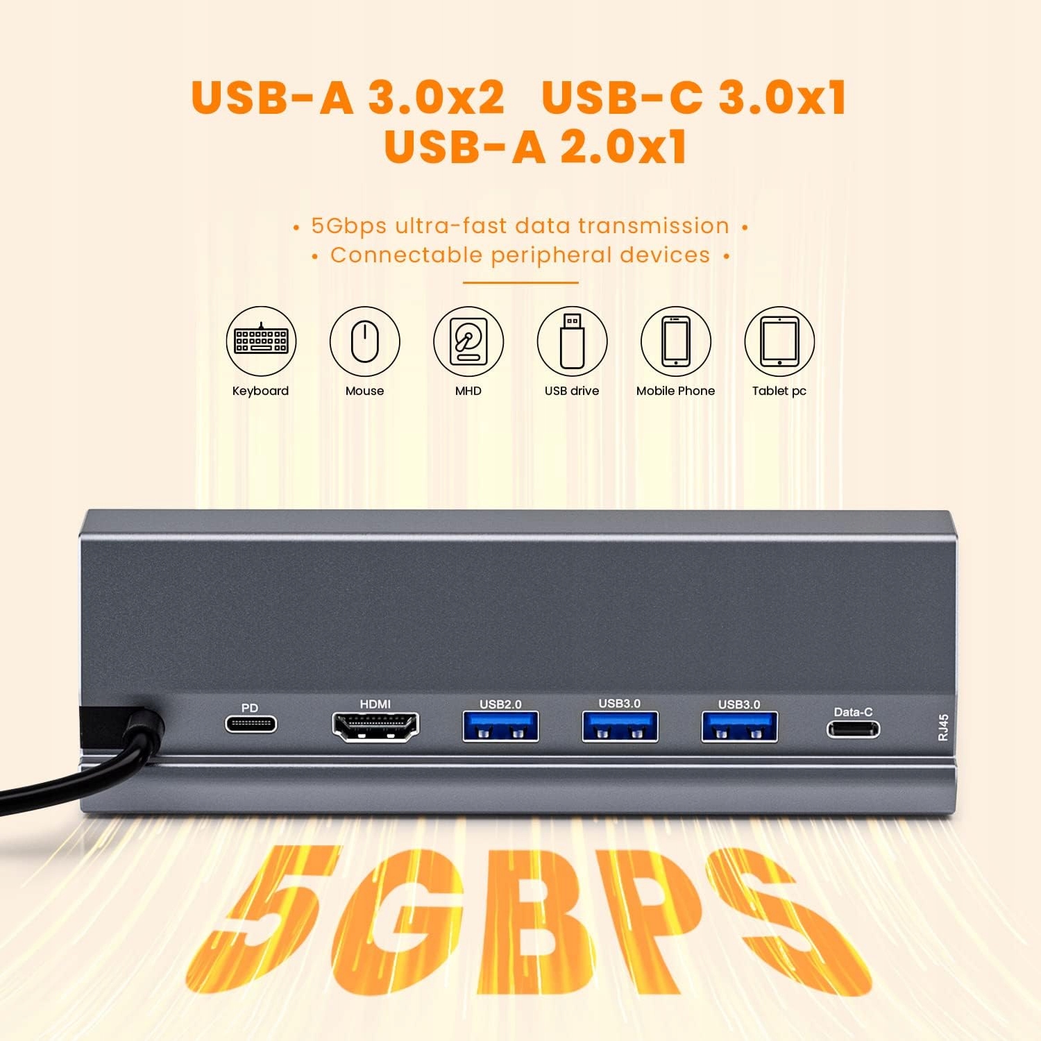 Информация об этом продукте h1> - [Док -станция 7 в 1] 1 x HDMI 4K 60 Гц выход; 1 X Gigabit Ethernet вход; 2 x порты USB-A 3.0; 1 X USB-A 2.0; 1 X USB-C 3.0 разъем данных; 1 X USB-C PD 100 W для зарядки.