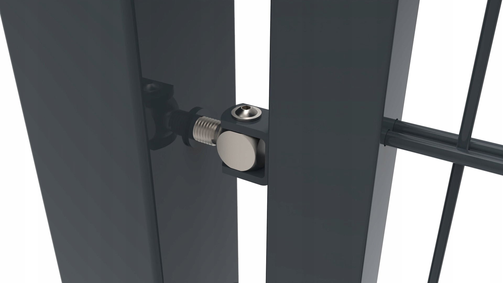 Изготовленная из оцинкованной стали с порошковым покрытием цвета антрацит RAL 7016, она идеально сочетается с панельным 2D-забором, создавая элегантный и целостный вид объекта.