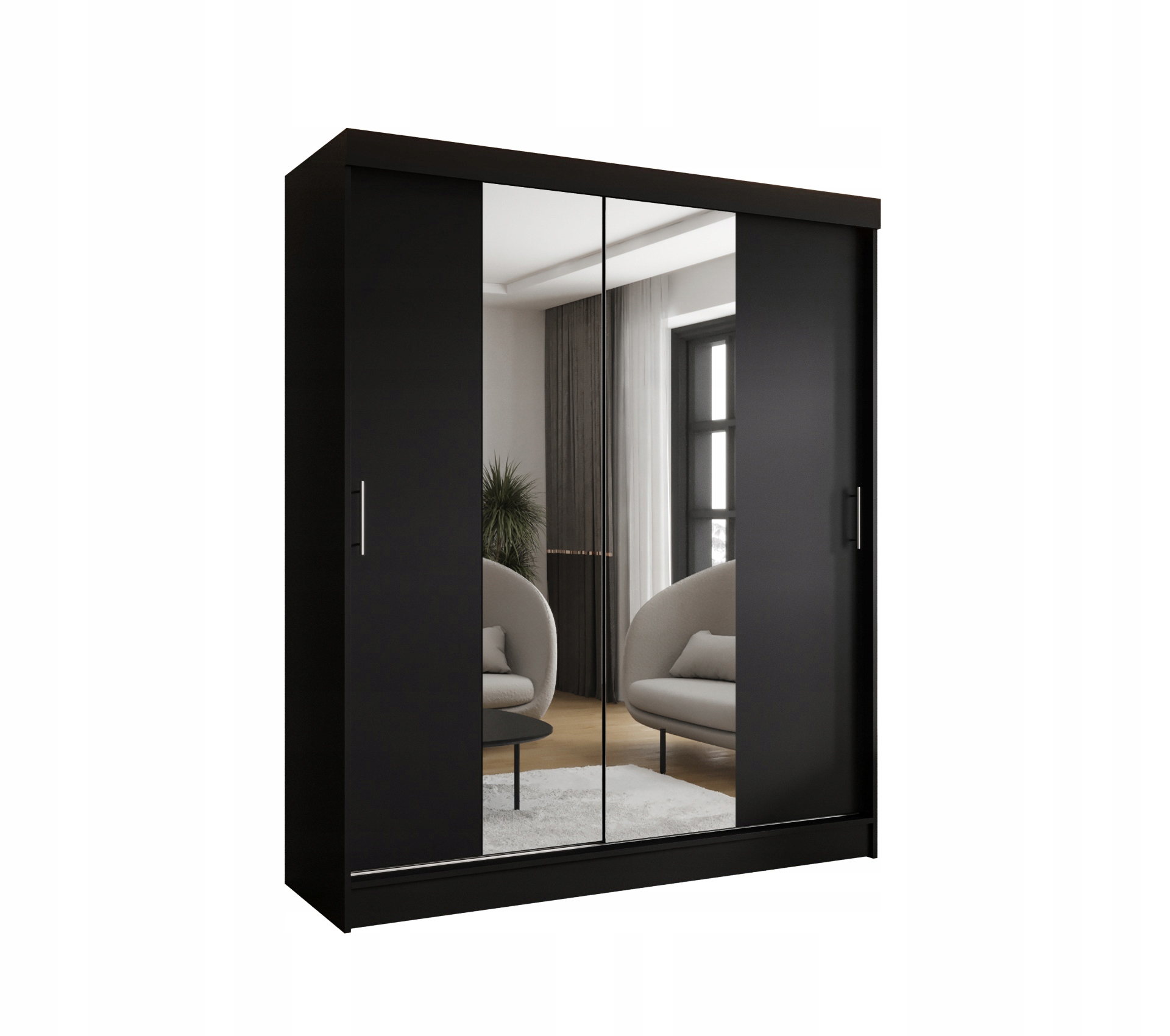 2D ШКАФ РАЗДВИЖНЫЙ 150х205 ЧЕРНЫЙ - ЗЕРКАЛО F - НОРМАЛЬНАЯ РУЧКА