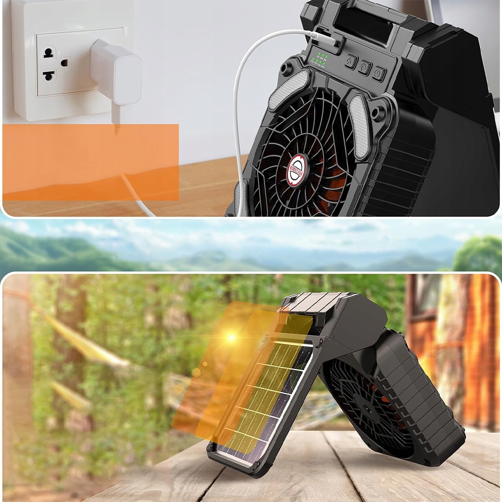 🟠1. 2 Методы зарядки: 1. Используйте чистую солнечную энергию для зарядки. 2 Низкий шум: максимальный уровень шума солнечного вентилятора составляет 35 децибел, так что пользователи не будут нарушены даже во время сна.