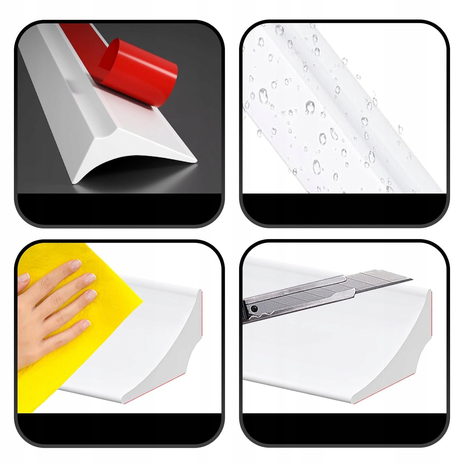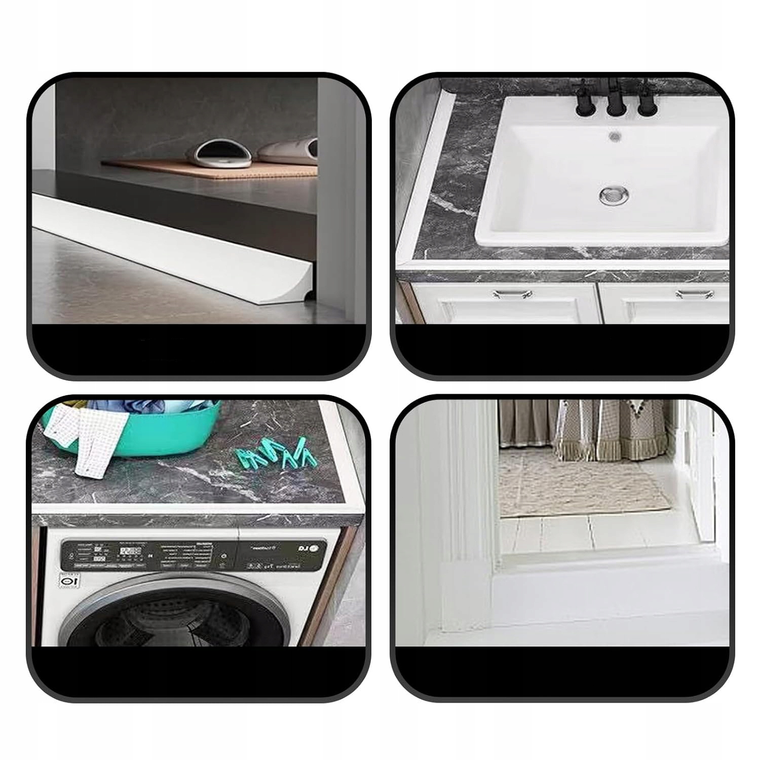 - Его можно использовать на полах в душевых кабинах, душевых поддонах, кухонных раковинах, под дверями ванных комнат, вокруг краев ванн, вокруг стиральных машин или унитазов, чтобы создать водный барьер, эффективно останавливая поток воды и обеспечивая отделение влаги от влаги, защищая ваш дом от влаги.