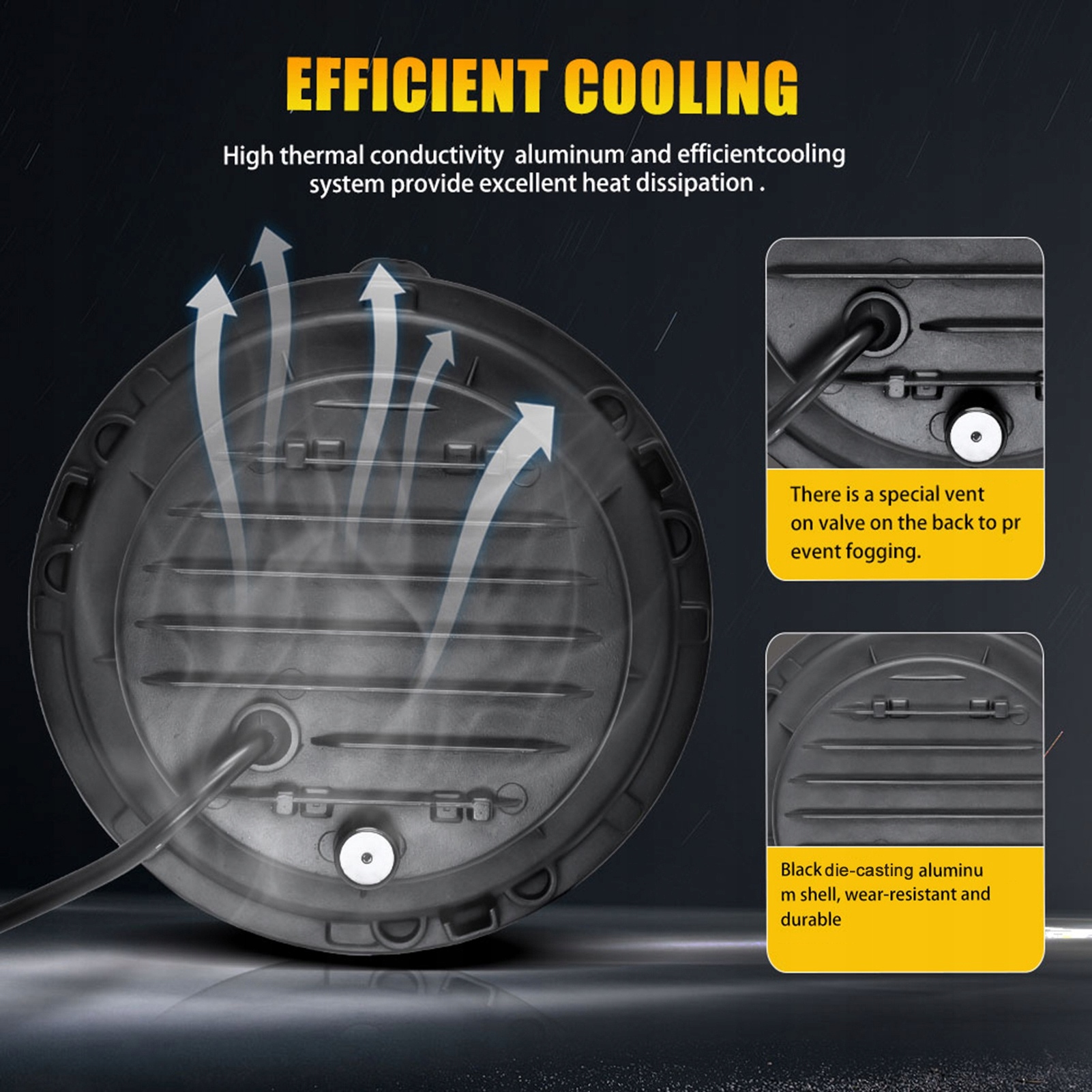 - Изготовлена из литого под давлением алюминиевого корпуса, устойчива к ударам и вибрации, обеспечивает максимальную защиту светодиодных фар от мелких потертостей и легких царапин. Конструкция радиатора для эффективного рассеивания тепла продлевает срок службы на 50000 часов.