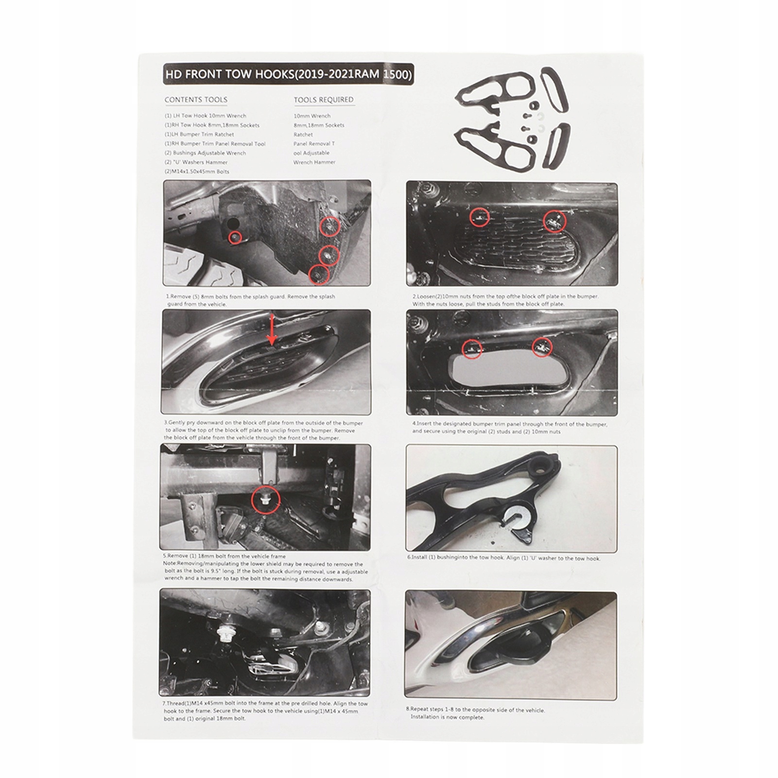 1. Применимая модель: автомобильный передний крюк является заменой Dodge Ram 1500 с двигателем 3,6 л 5,7 л 2019, 2020, 2021, 2022 годов.