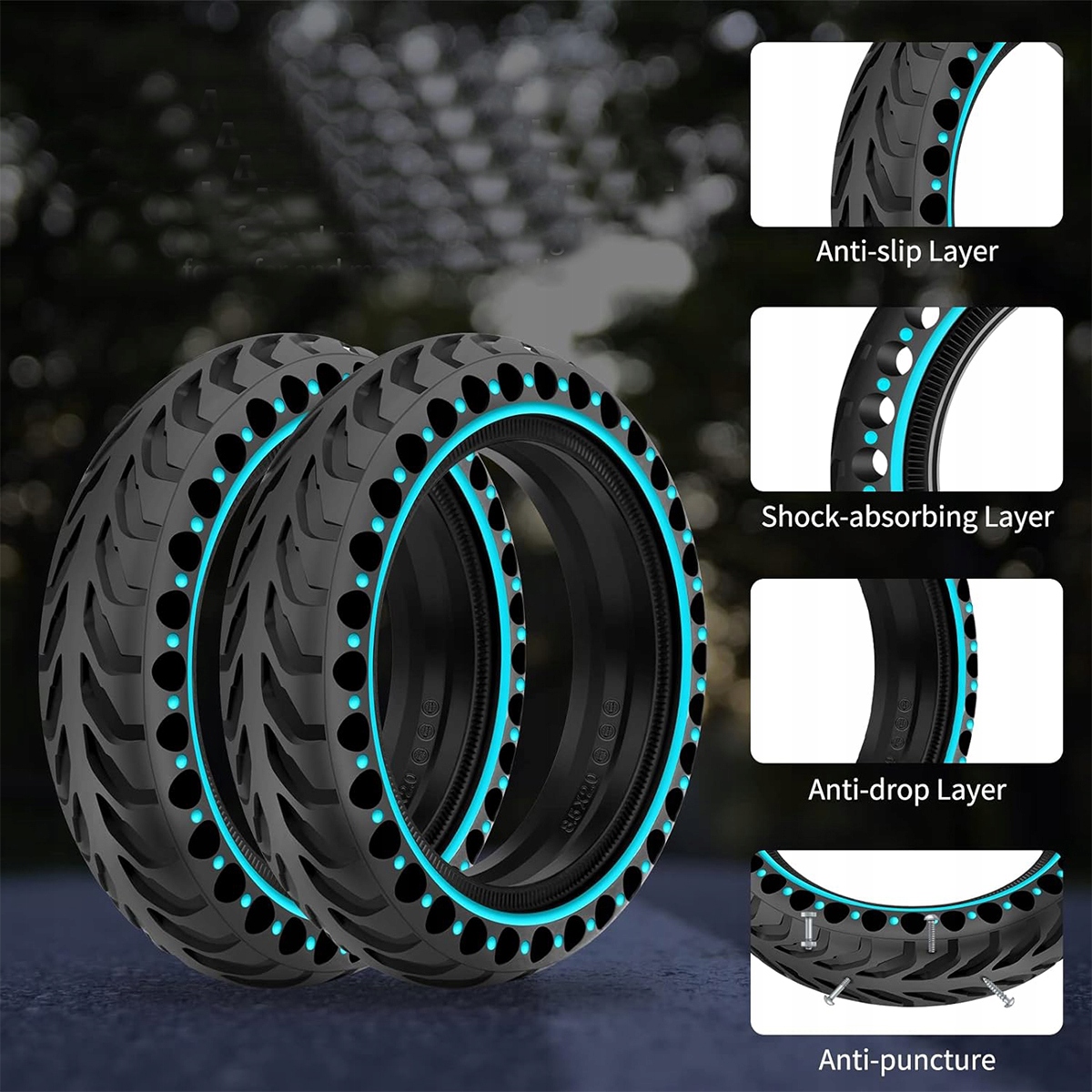 ✅ 【Сотовидная конструкция】 Сотовидная шина с текстурированной поверхностью обеспечивает хорошее сцепление. и противоскользящие свойства. Его можно использовать на заснеженных и дождливых дорогах, обеспечивая максимальную безопасность. Нет необходимости в накачке, ремонте, камерах, велосипедных насосах, и они удобны в использовании.