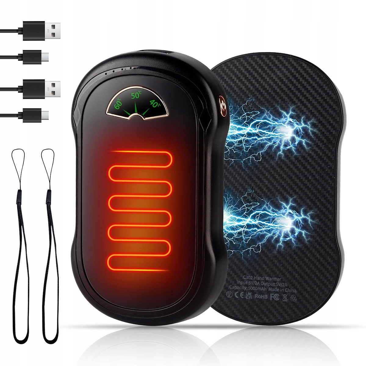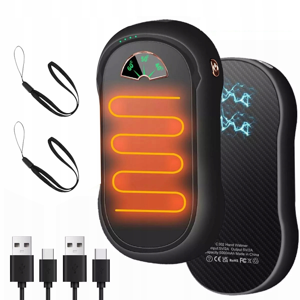 Наша многоразовая грелка для рук оснащена литиевой батареей большой емкости 10 000 мАч (одноэлементная 5000 мАч, всего 2 упаковки по 10 000 мАч). Многоразовая грелка для рук также оснащена многоразовым зарядным портом USB-C. Он более энергоэффективен и экономичен, чем одноразовые грелки для рук, и его можно использовать от 5 до 10 часов. Это исключает короткий срок службы большинства многоразовых грелок для рук.