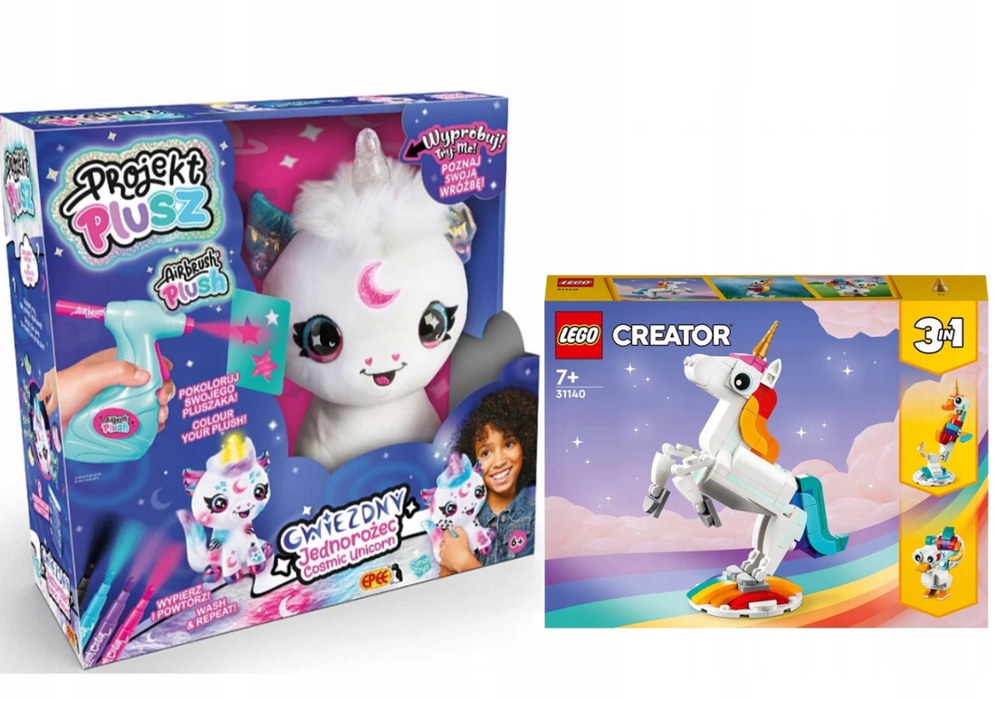 2W1 PROJEKT PLUSZ JEDNOROŻEC ŚWIECĄCY RÓG + LEGO(R) MAGICZNY JEDNOROŻEC