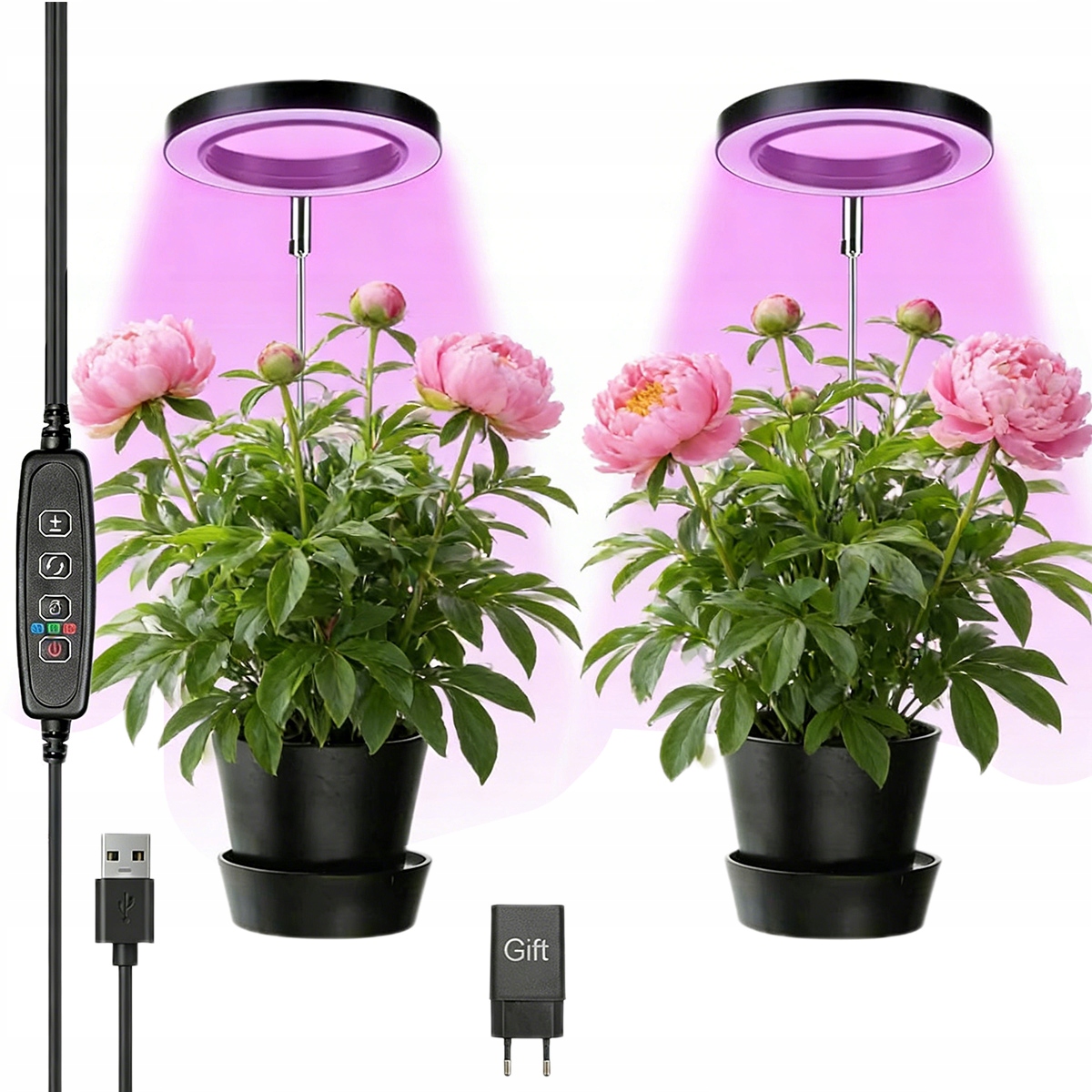 Светодиодный светильник для растений, 2 головки, 2*42 светодиодных светильника для растений, светильник для выращивания растений полного спектра с таймером на 3/9/12 часов с USB-адаптером, 3 режима освещения и 10 уровней яркости (черный)