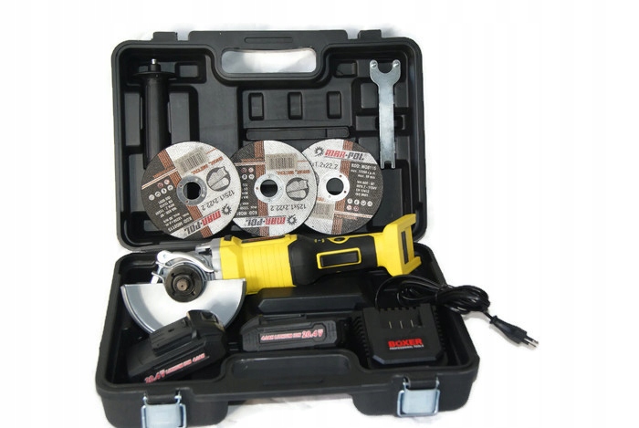 - Углошлифовальная машина BOXER 125 мм с питанием от аккумулятора