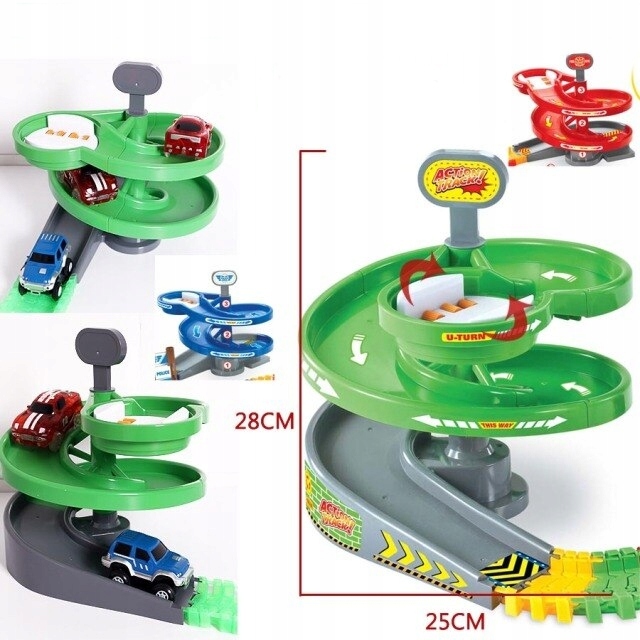 Огромная автомобильная трасса со множеством дополнительных элементов, мостом, туннелями, стрелкой и элементом, поворачивающим машину на 180 градусов. Это позволяет неограниченное количество комбинаций трассы для вождения, поэтому игрушка никогда не надоест.
