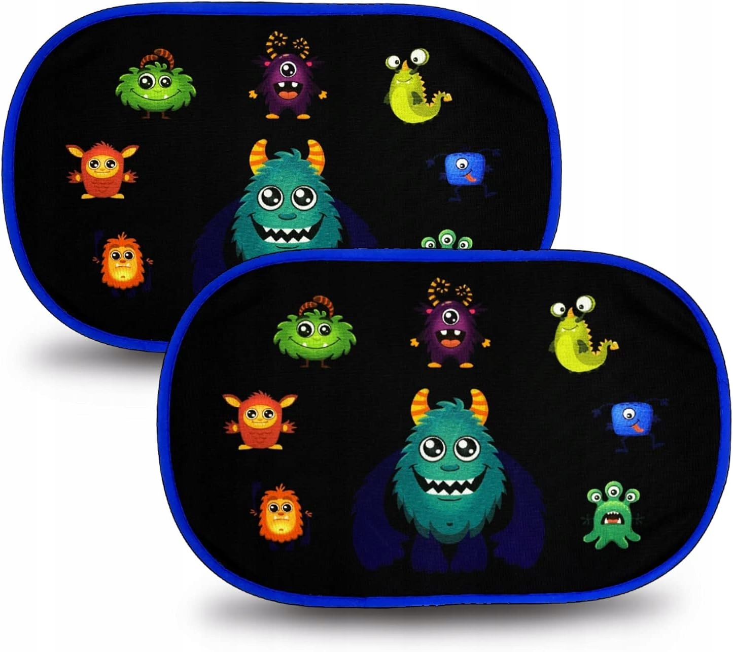 - Набор из двух автомобильных солнцезащитных козырьков с интересным и красочным мотивом для приятных поездок детей.
