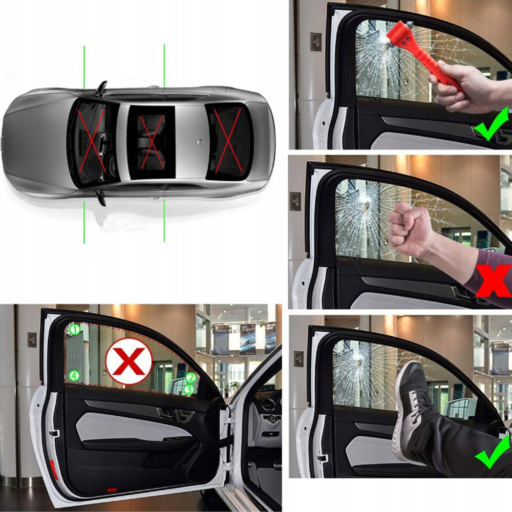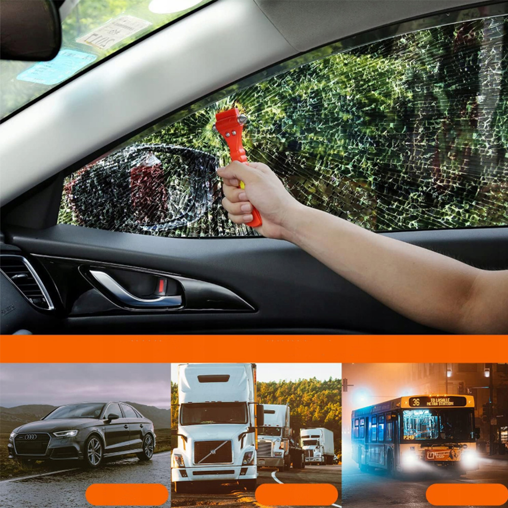 Двусторонние автомобильные молотки для разбития стекол, изготовленные из высококачественной углеродистой стали в сочетании с инженерными пластиками, этот автомобильный молоток очень острый и легкий. разбивать окна, чтобы спасти жизни, чтобы вы могли легко найти путь к отступлению. Высококачественное, острое как бритва стальное лезвие эффективно разрезает ремни безопасности, открывая вас и ваших пассажиров.