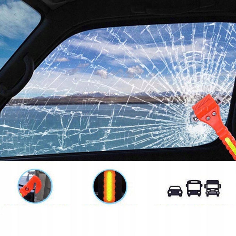Незаменимый инструмент безопасности. Этот спасительный многофункциональный автомобильный молоток и нож для ремней безопасности долговечен и надежен, что позволяет вам быстро выйти из автомобиля в чрезвычайной ситуации. Один конец представляет собой нож для ремня безопасности, а другой конец — стеклобой с двумя острыми и тяжелыми наконечниками из закаленной углеродистой стали.
