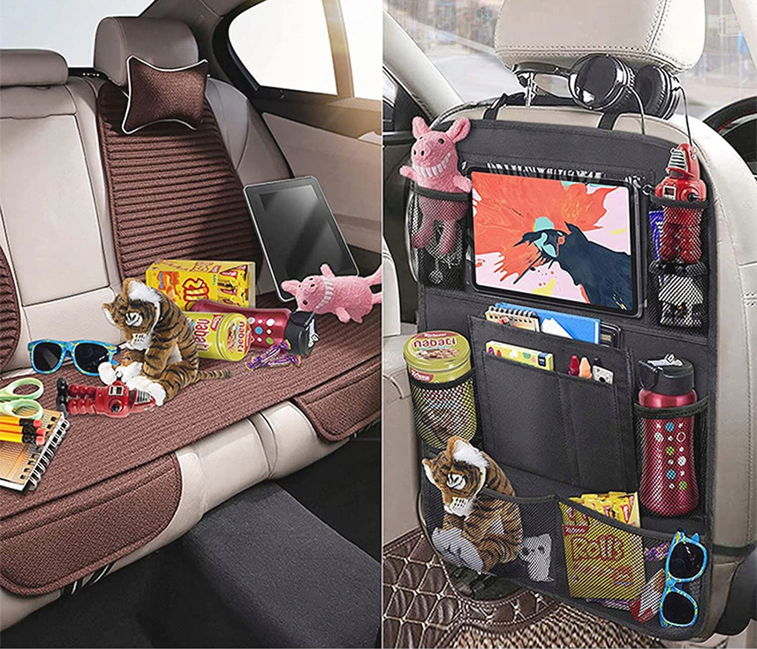 【Размеры】42 x 62 см, прозрачный карман для iPad 10,5 дюймов, позволяет детям смотреть телевизор, а также напитки, холодильник и игрушки. Это идеальное решение для хранения вещей для тех, кто в пути, что делает ваше путешествие более приятным и удобным.