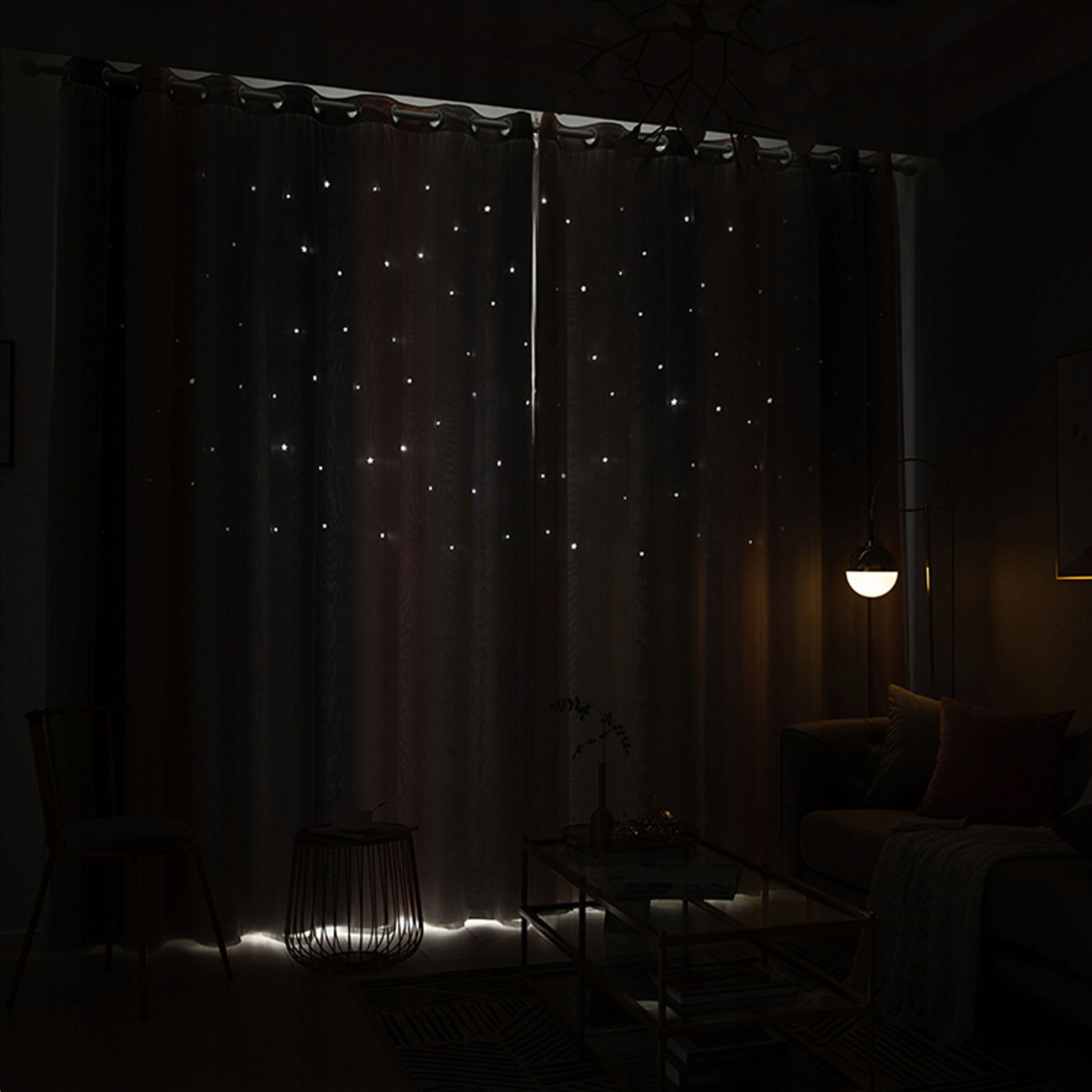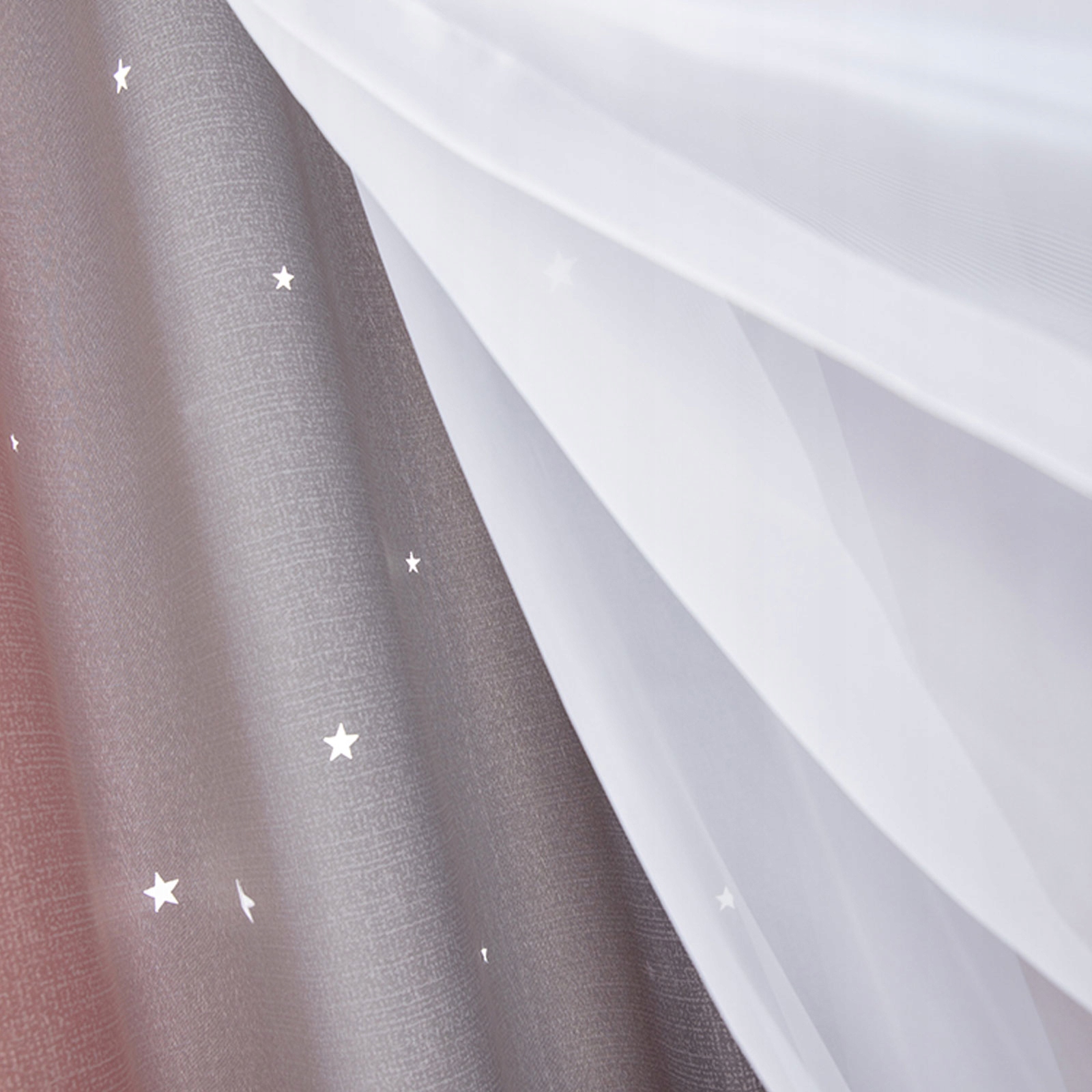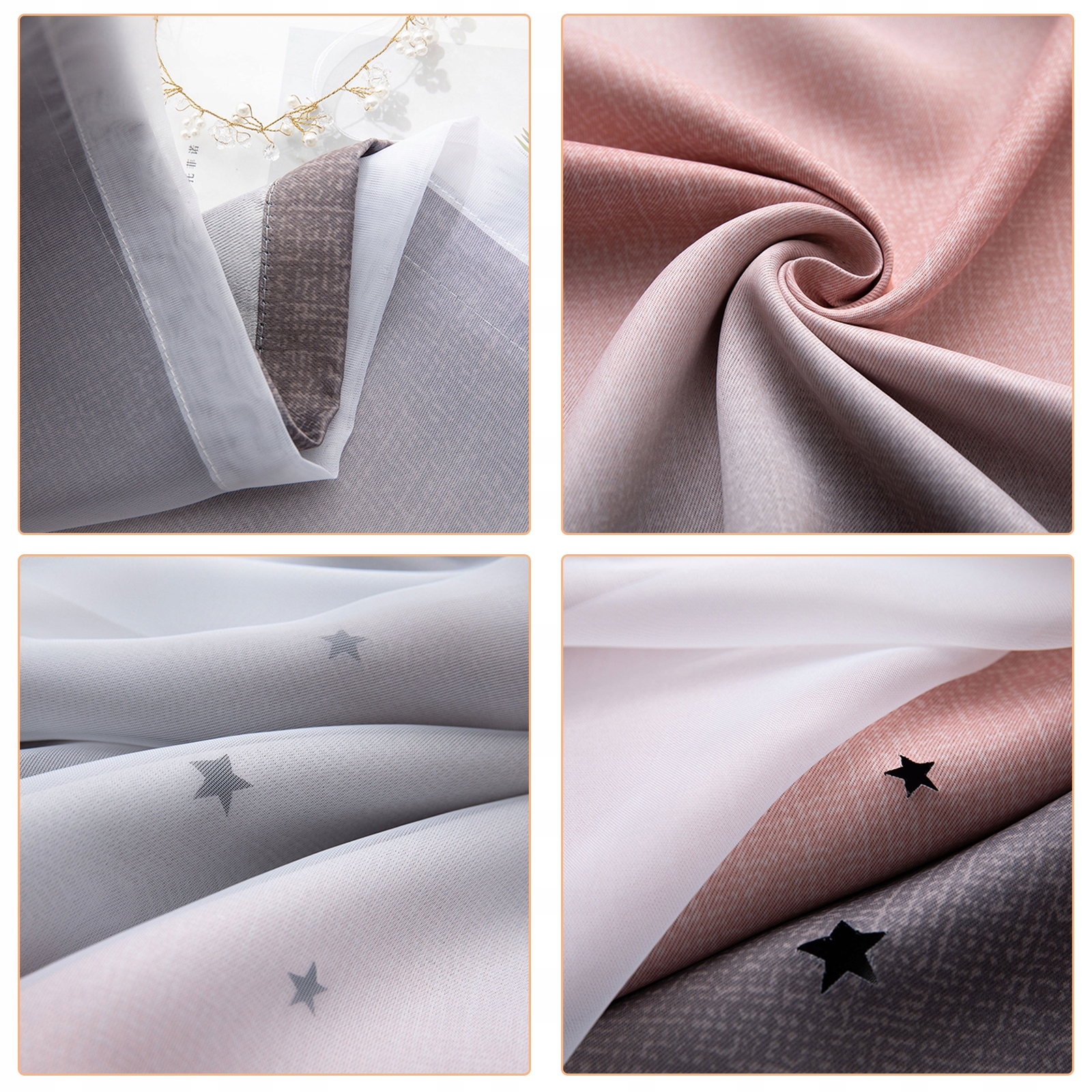 - ✨【Двухслойные шторы】: 2 слоя включают плотные шторы и белые тюлевые шторы. Полые шторы со звездами создают мечтательное звездное небо в вашей комнате и идеально подходят для девочек или детских спален. Двухслойные шторы не только подходят для украшения дома, но и выполняют все функции плотных штор.