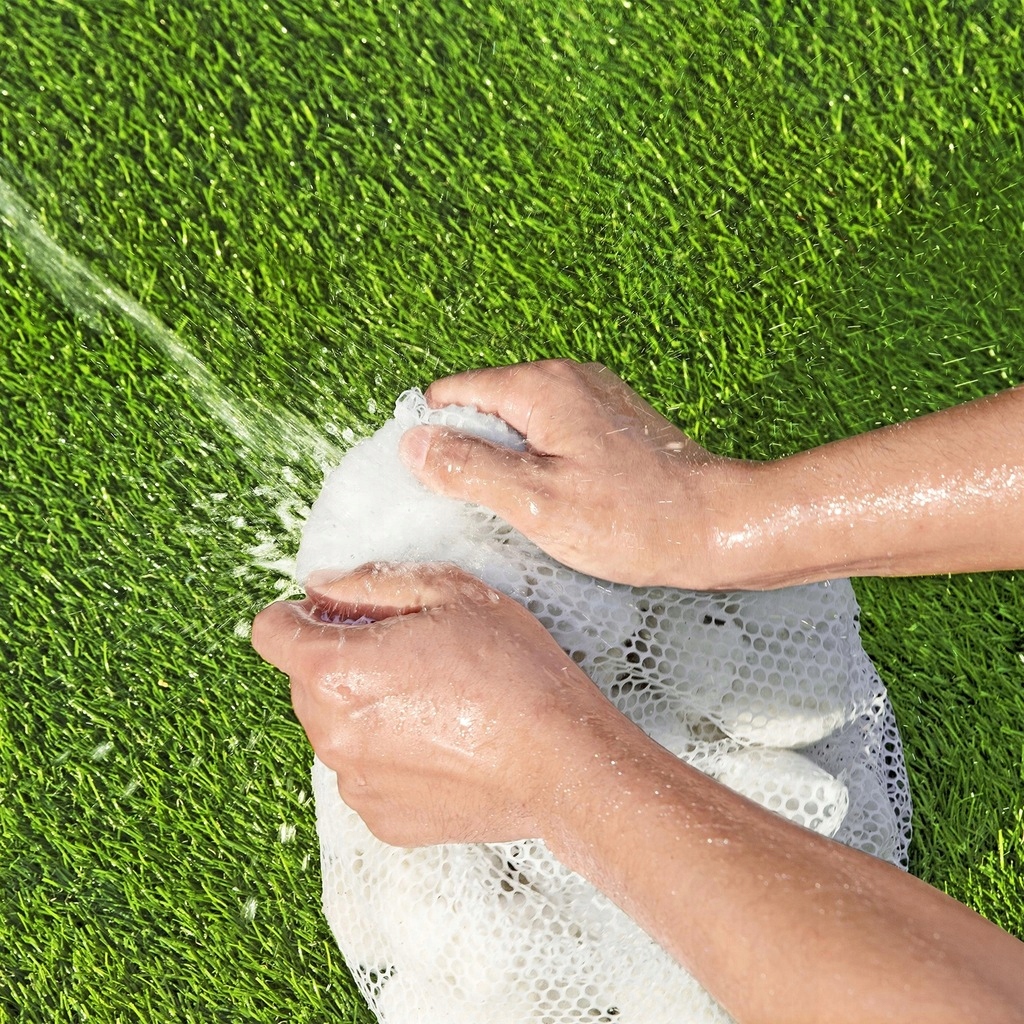 В комплект входит промывочная сетка, позволяющая удобно мыть шарики фильтра. Благодаря такой сетке шарики можно легко мыть, что обеспечивает их долговременную эффективность и высокую эффективность фильтрации в течение всего сезона. Это практичное решение, позволяющее содержать мячи в чистоте и готовить их к следующему использованию.