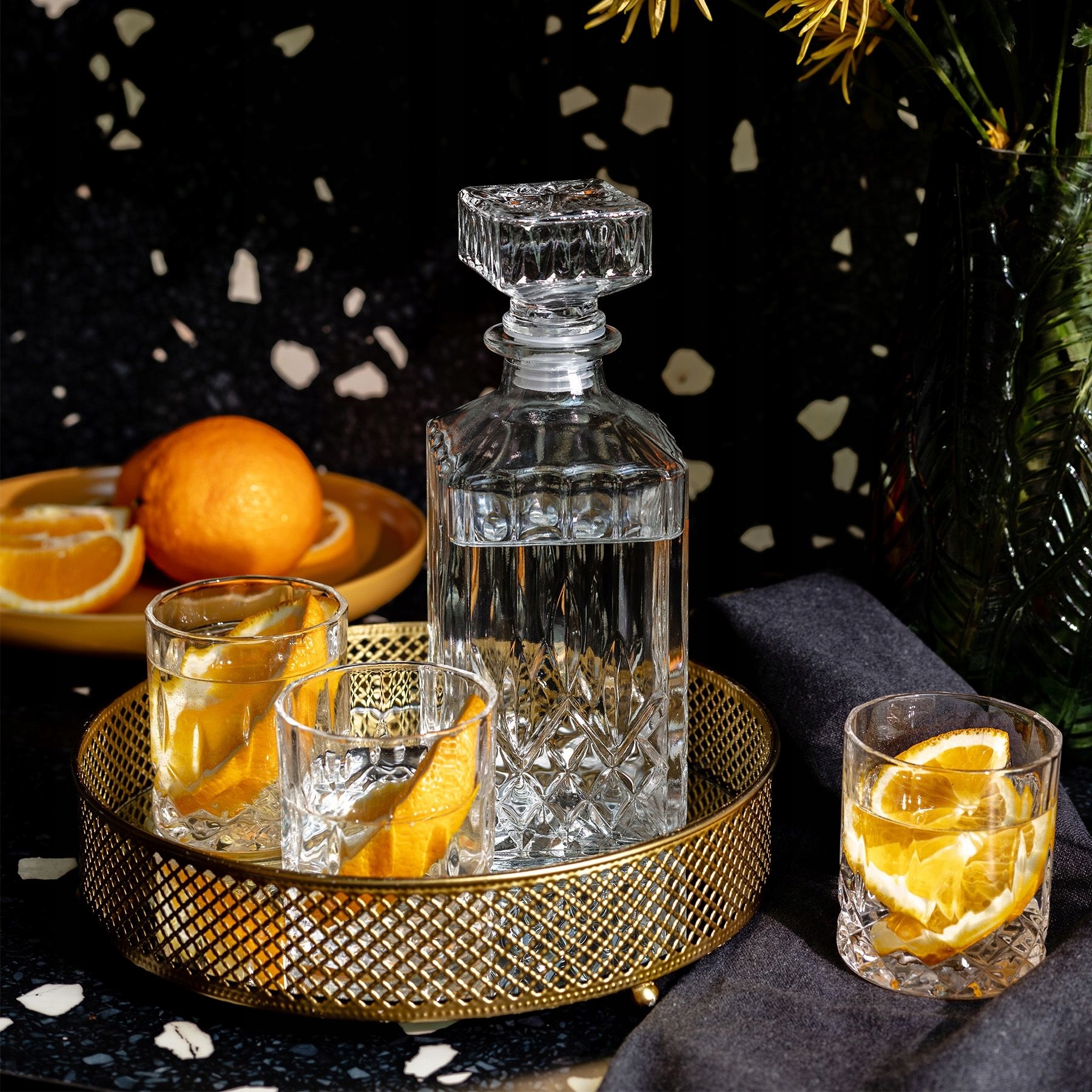 Графин JAQIN — это уникальный набор, который будет отлично смотреться на вашем столе. Он изготовлен из прозрачного стекла, имитирующего хрусталь, что делает изделие элегантным и хорошим вкусом.. Идеально подходит для вечеринок, привнося неповторимую атмосферу в ваш дом! Этот набор очарует ваших гостей, которые захотят иметь его у себя дома.
