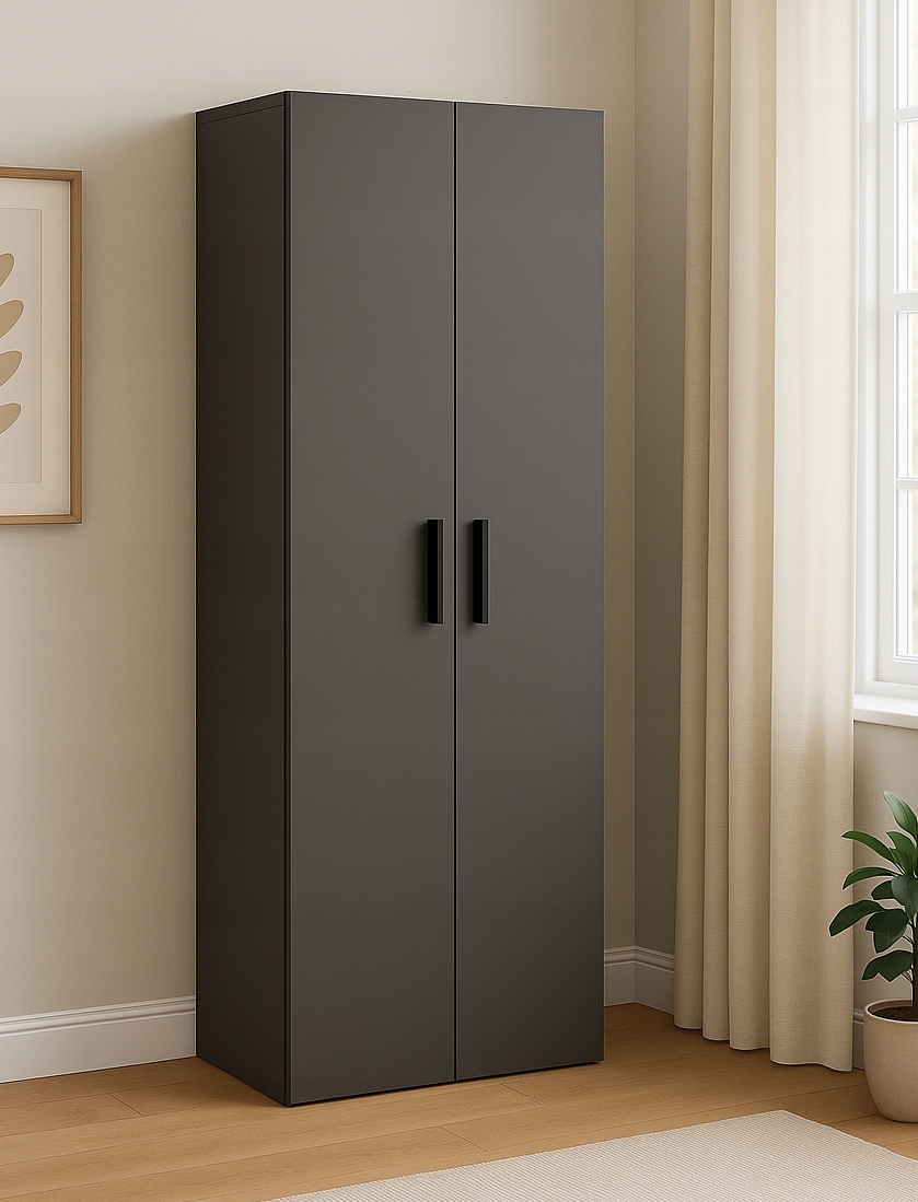 Два узких модульных шкафа общей шириной 80 см образуют один, идеально подходящий для любой комнаты, его можно использовать как дополнение к гардеробу или другим помещениям.