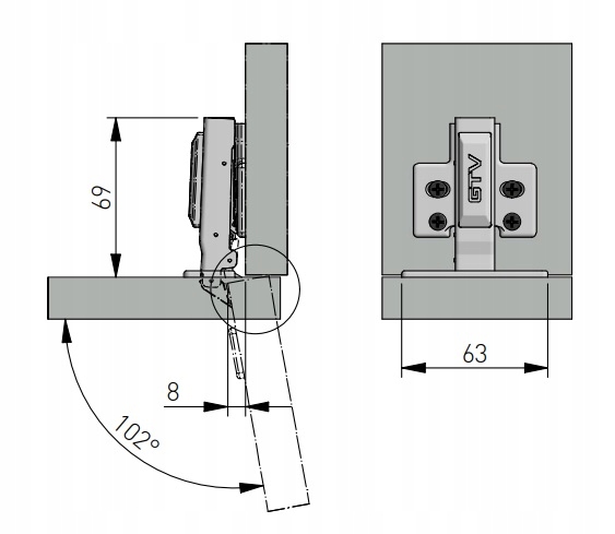 2x GTV мебель шарнир, нанесенный с престижным престижом Cichy 4W закрытие