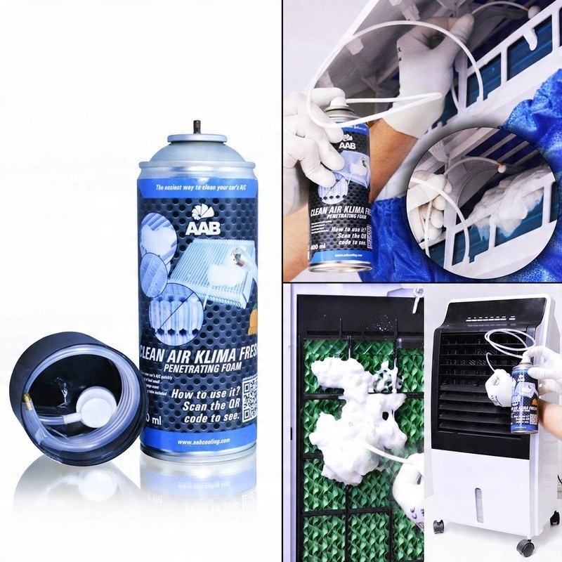 2 x AAB CLEAN AIR KLIMA FRESH PENETRATING FOAM 400 мл (активная пена) — новейший спрей от AAB для эффективной очистки автомобильных систем кондиционирования и вентиляции, а также домашних кондиционеров. Улучшенная формула активных ингредиентов эффективно очистит и устранит неприятные запахи, подарив вам и вашим близким невероятную свежесть и чистоту воздуха с оттенком нежного апельсинового аромата. Изделие не оставляет жирных пятен и очень легко чистится.Не откладывайте чистку кондиционера на потом! Начните заботиться о своем здоровье и здоровье своих близких!