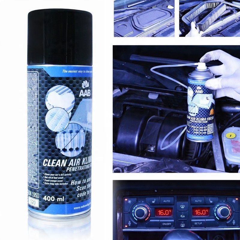 Вы садитесь в машину, запускаете двигатель, и через некоторое время замечаете противный запах, доносящийся из дефлекторов? Это первый признак того, что ваш кондиционер нуждается в немедленной чистке. У нас есть решение для этой проблемы: AAB CLEAN AIR KLIMA FRESH PENETRATING FOAM 400 мл (активная пена) поможет вам эффективно решить вашу проблему!