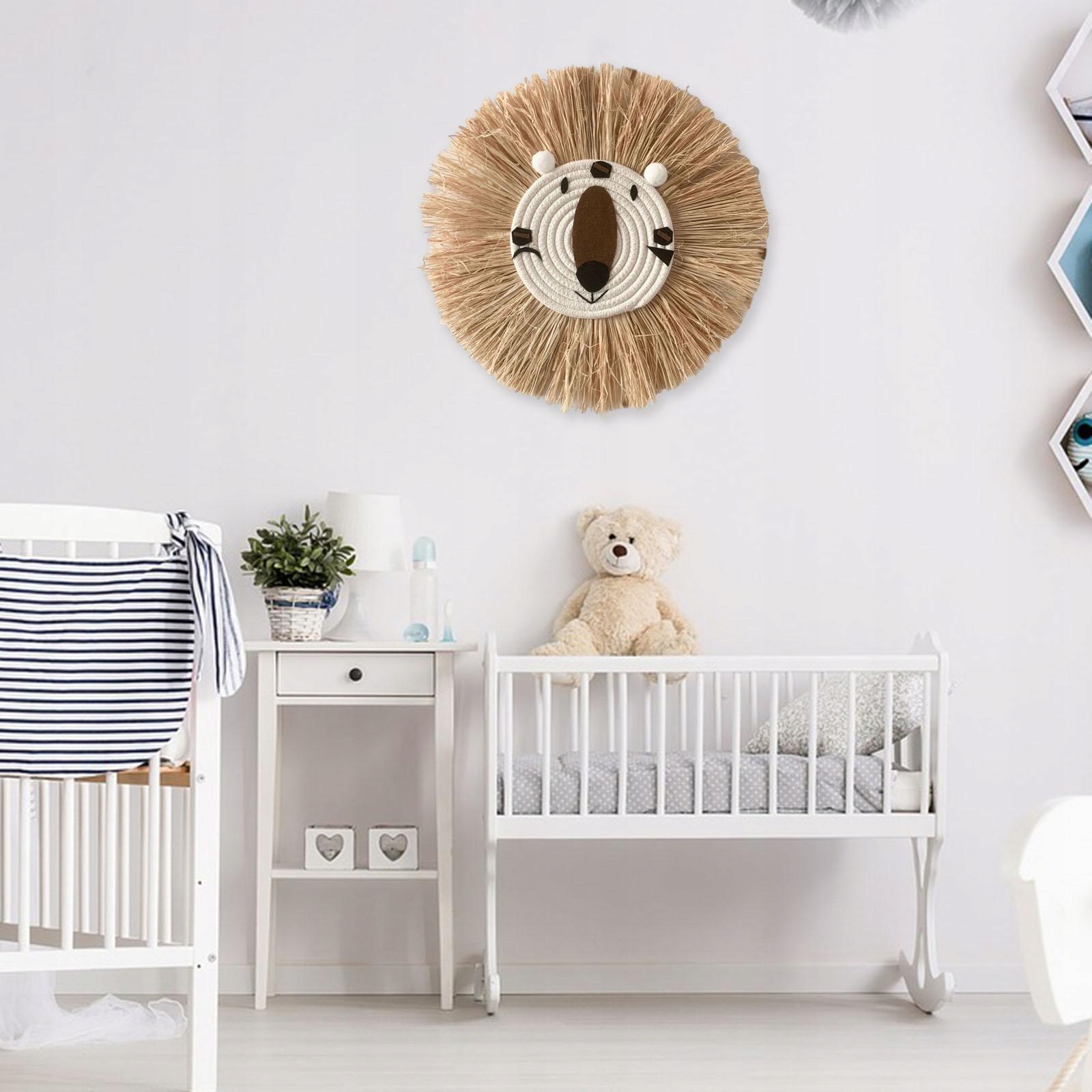2x круглий солом'яний настінний декор гобелен з бавовняної нитки ручної роботи Лев