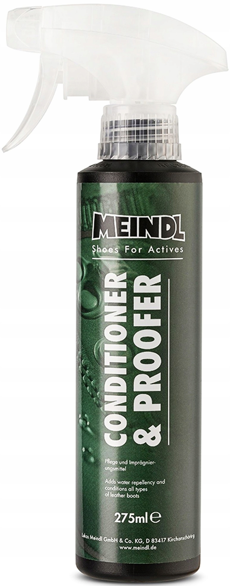 Meindl Conditioner Proofer 275мл — спрей на водной основе, предназначенный для ухода и пропитки обуви из всех видов кожи; в том числе с мембраной Gore-Tex. Специальная формула была разработана для предотвращения высыхания кожи и сохранения водонепроницаемости обуви.
