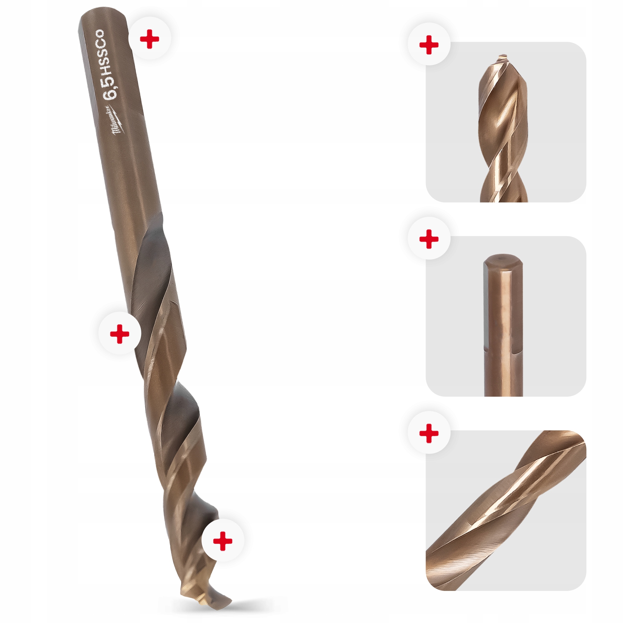 2-кратные металлические сверла 6,5 мм Милуоки Кобальт HSS-G Ошибка из нержавеющей стали