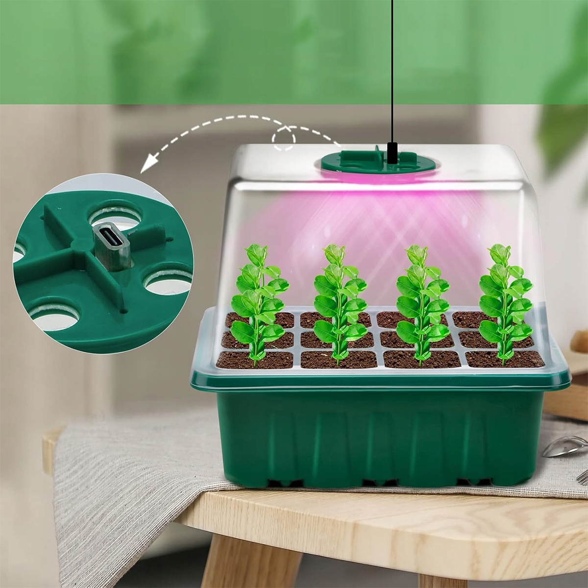Каждый лоток для рассады в теплице оснащен 8 светодиодными лампами. Свет полного спектра, например, естественный солнечный свет. Идеально подходит для всех стадий роста и различных видов растений, он значительно поддерживает рост в помещении за счет ускорения фотосинтеза.