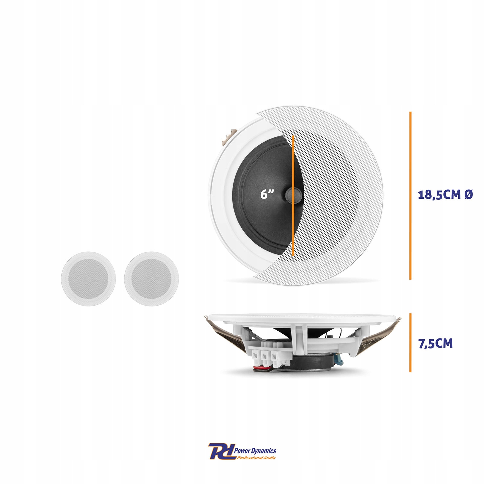 Набор состоит из двух полных динамиков с двойным конусом. В дополнение к водостойкости (IPX5), динамики характеризуются алюминиевым барбекю и пластиковой корзиной ABS, которая обеспечивает долговечность и эстетику. Размеры динамиков имеют диаметр 185 мм и глубину 75 мм, а их вес составляет всего 1,80 кг, что облегчает их установку в любом месте.