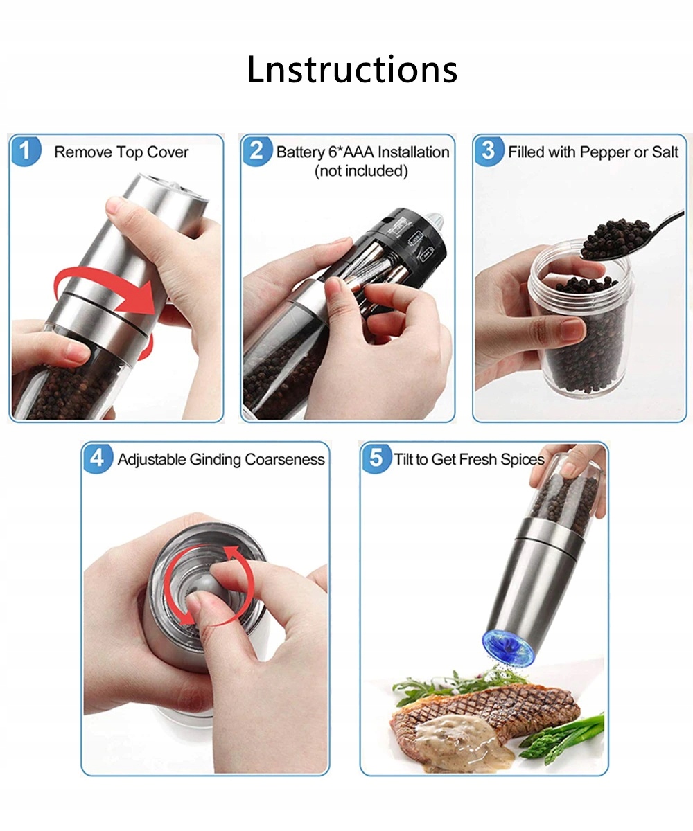 Просматривая «2x СІЛІ ДЛЯ ПЕРЦЮ СВІТЛЕНИЙ МЛИН Gravity MILL», вы можете быть уверены, что данный товар из каталога «Электрические мельницы» будет доставлен из Польши и проверен на целостность. В цене товара, указанной на сайте, учтена доставка из Польши. Внимание!!! Товары для Евросоюза, согласно законодательству стран Евросоюза, могут отличаться упаковкой или наполнением.