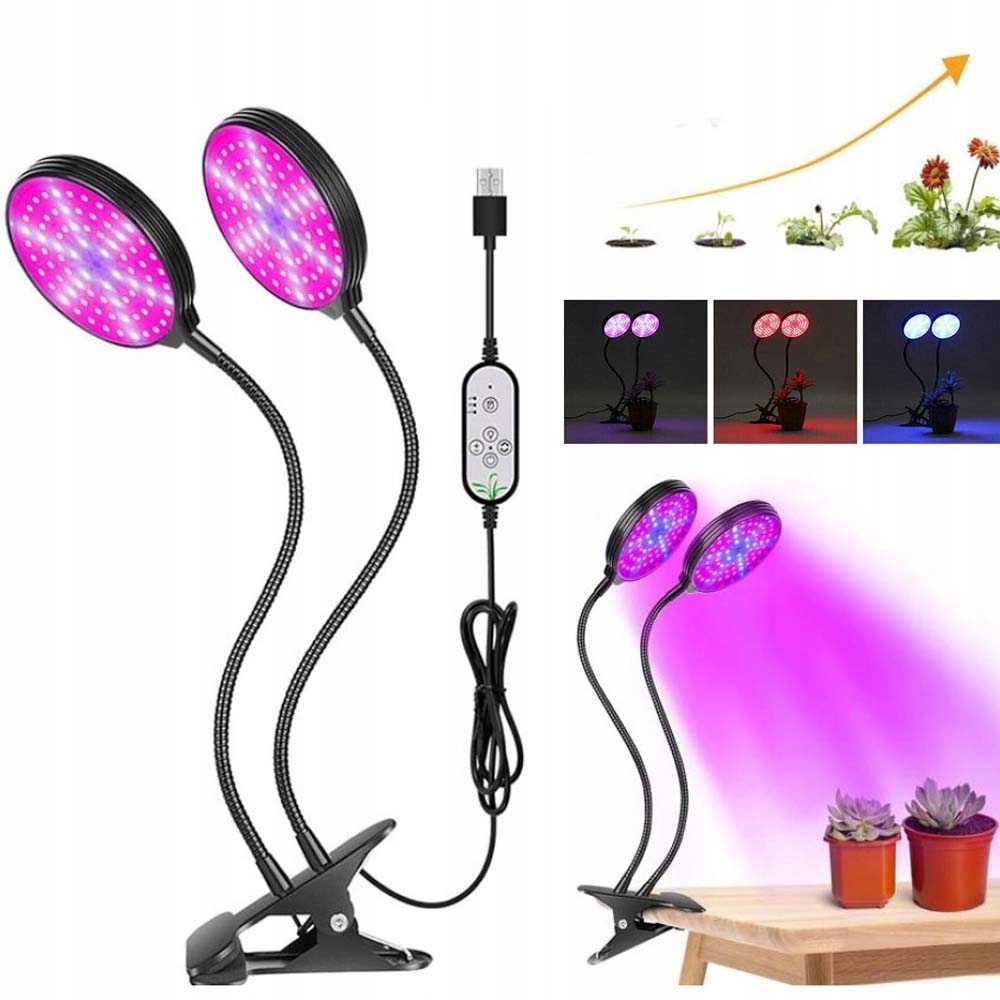 2X СВІТЛОДІОДНА ЛАМПА ДЛЯ ВИРОЩУВАННЯ РОСЛИН З ЖИВЛЕННЯМ ВІД USB ТАЙМЕРА + ПУЛЬТ 30 Вт