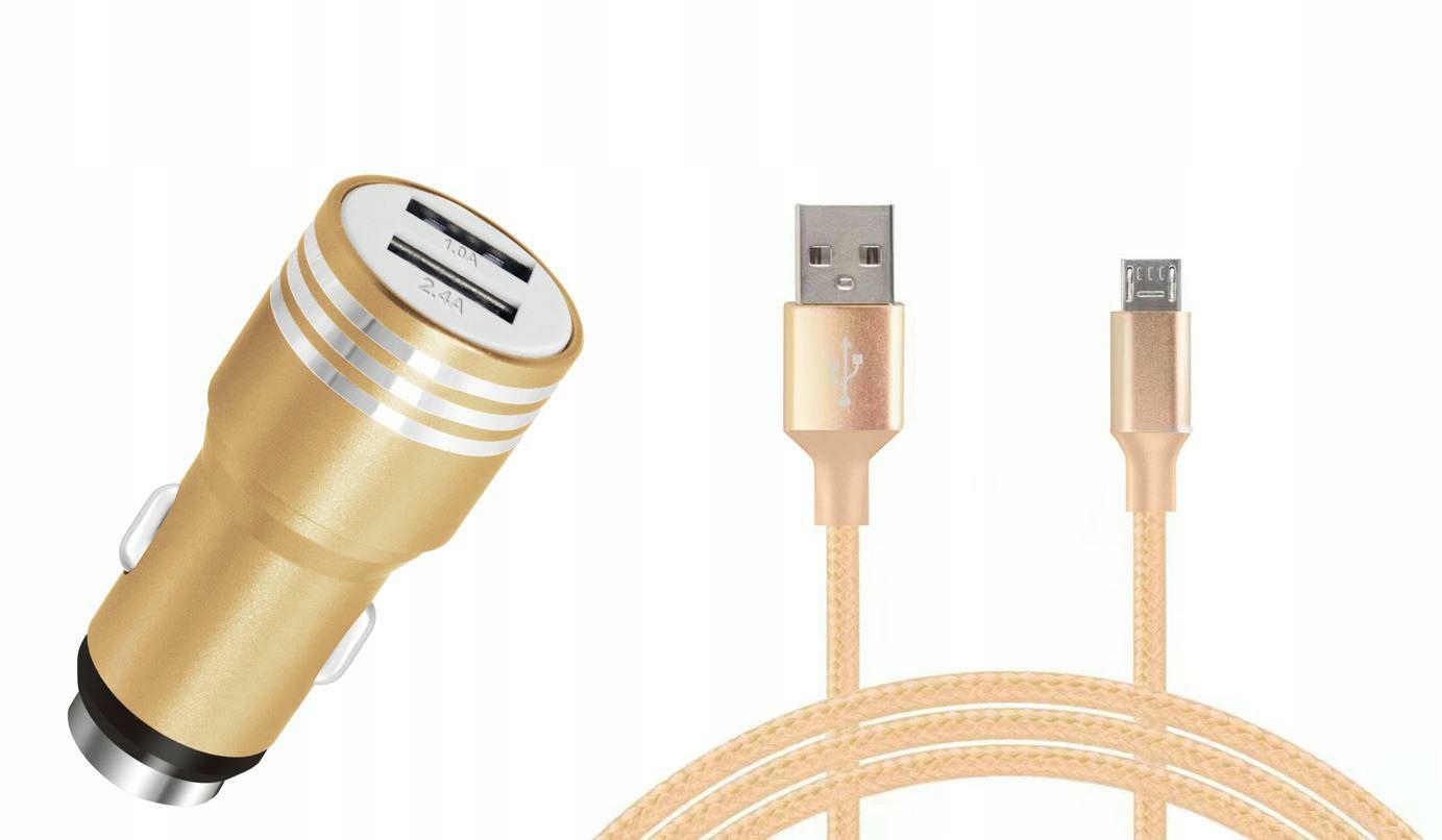 2 автомобильных зарядных устройства USB для автомобилей — с кабелем Micro USB, 2,4 А, золотого цвета