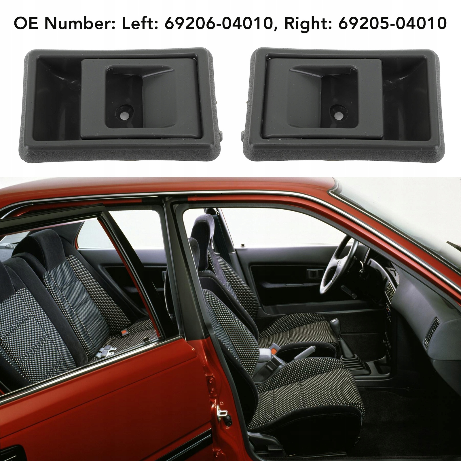 1. Номер оригинального оборудования: номера оригинального оборудования этой внутренней дверной ручки: 69206-04010, 69205-04010, которая отлита и спроектирована на основе исходных данных.