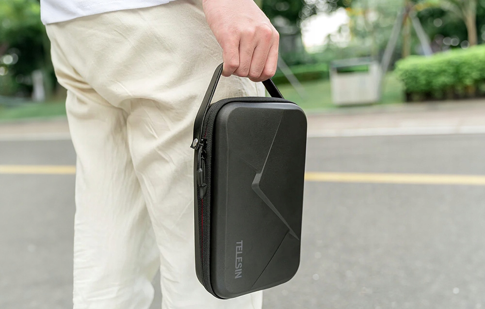 Защитная сумка TELESIN создана с особой тщательностью, а ее современный внешний вид понравится даже самым требовательным пользователям. Вам не нужно беспокоиться о том, что ваши устройства поцарапаются, потому что они очень мягкие внутри. Более того, их корпус невероятно тверд, что защищает устройства внутри от разрушения. Он также водонепроницаем на уровне IPX4, что делает его устойчивым к брызгам и дождливой погоде. Для большего удобства переноски оснащен подвижной ручкой.