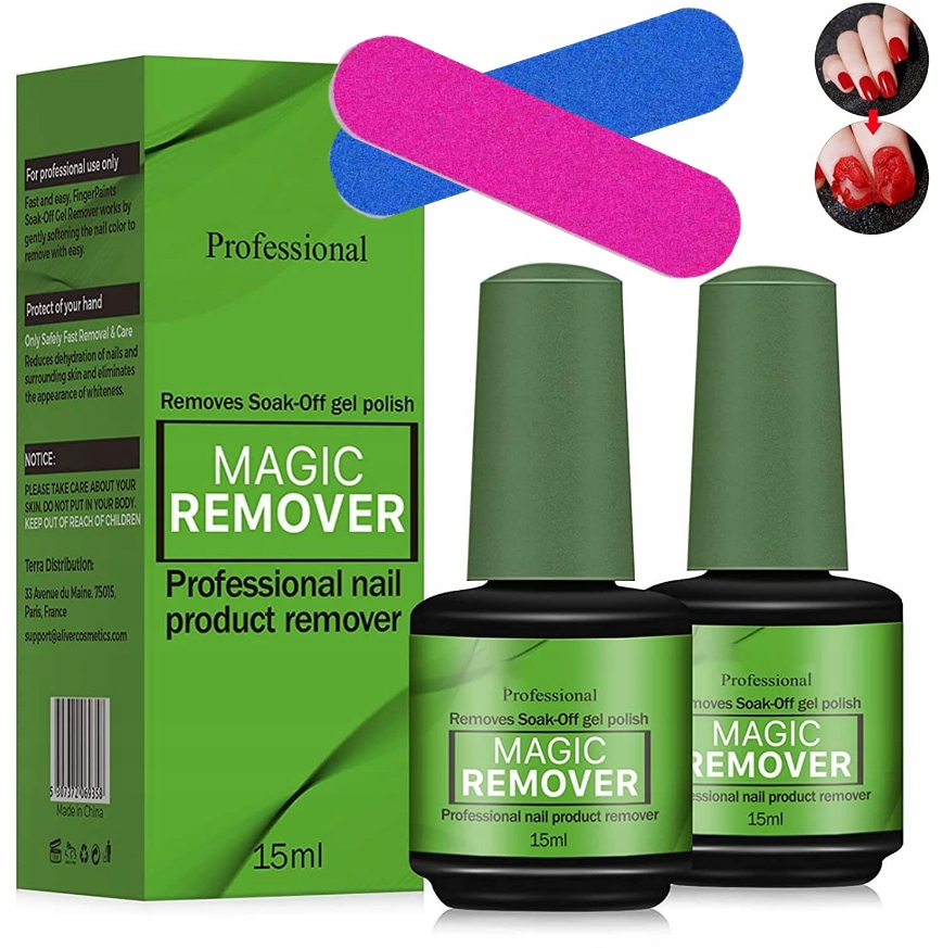 Средство для снятия гель-лака Magic 2x15 мл. Удаляет гель + 2 пилочки для ногтей.