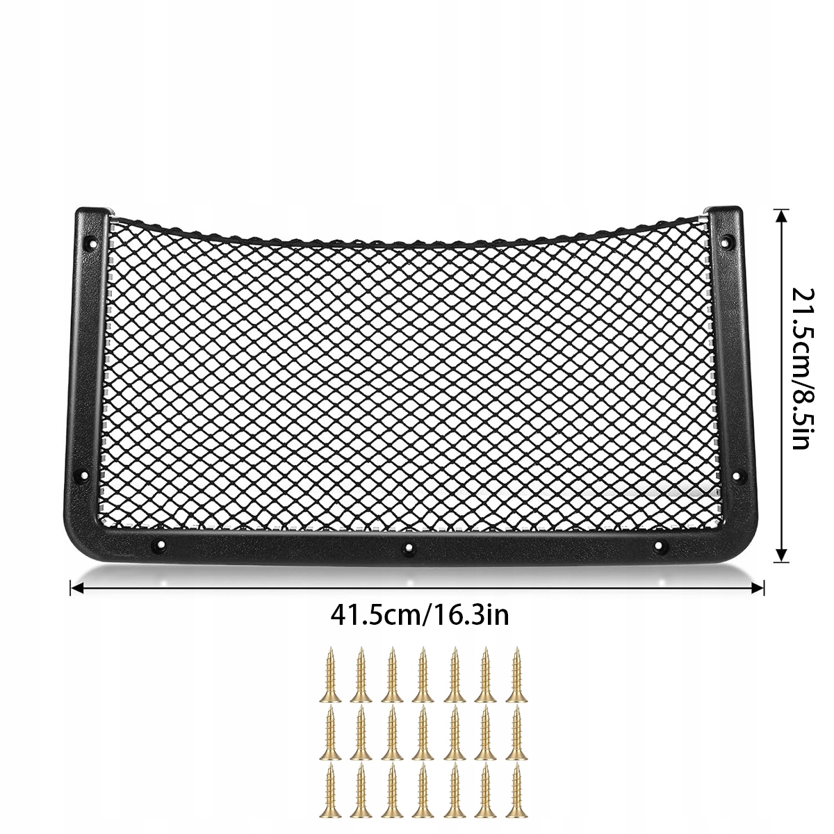 Размер нашей сети хранения составляет (около) 41,5 x 21,5 см, что подходит для установки в большинстве мест и не занимает много места. Легкая и безопасная сборка с помощью прикрепленных винтов в грузовике, машине, водолазке, отдыхе и даже в любом месте дома